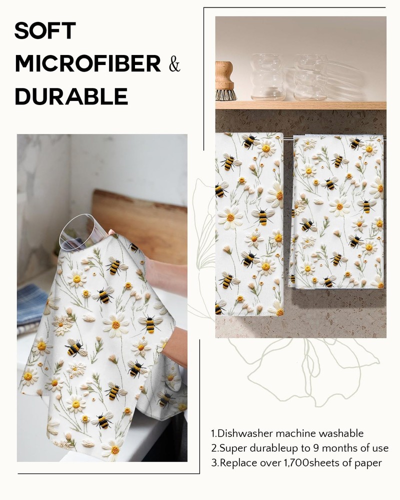 kitchen towels 18 x 26 Inch dish towels for kitchen Set of 2 absorbent kitchen towels and dishcloths sets funny kitchen towels Set of 2 PCS: The kitchen towels are set of 2 PCS in different print designs, not just for kitchen, but also for decorating your home and adding interest Absorbent & Fast Drying: These microfiber kitchen towels are engineered to soak up lots of liquid, much more absorbent than cotton towels and dry pretty fast Generously Size: Each dish towels for kitchen measures 18 x 26 Inches, perfect size. This towel can effectively help you clean grease Cute Design: Printed with stylish, fashion and cute patterns. The funny kitchen towels are the perfect combination of seasonal decoration and daily cleaning Exquisite Package: The dish towels come with exquisite package, suitable for giving to your friends, family, lover and so on during the holiday season