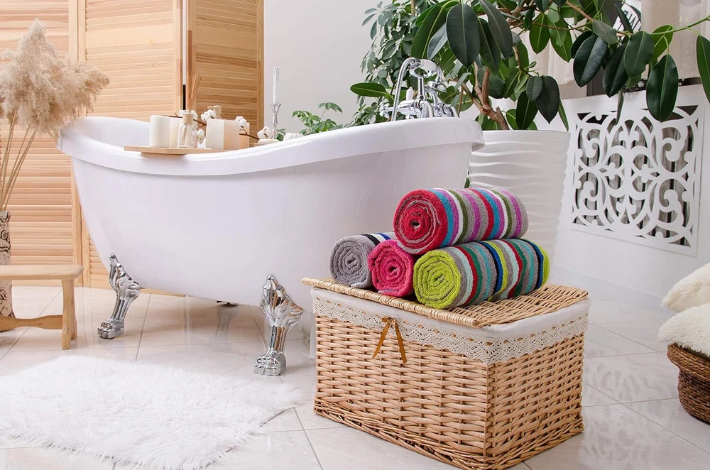 Product Description 3-Piece Bath Towel Set This set of striped bath towels adds a pop of color to any bathroom. Perfect for lovers of contemporary, retro, and fun designs. Each set features assorted stripes, and no two sets are the same. Measuring 27 x 54 inches, these towels are a convenient size for use as bath or guest towels. Machine washable and easy to care for. Lightweight & Everyday Use Made from 100% cotton for a soft feel that stays comfortable wash after wash. Oeko-Tex Certified These towels are Oeko-Tex certified, meaning they have been independently tested and are free from harmful chemicals or dyes. Great Value This set includes three bath towels and offers a budget-friendly option compared to buying towels individually. A practical choice for families, newlyweds, or housewarming gifts. Excellent value: This convenient set includes 3 generously sized bath towels. It offers excellent value for money and is a cheaper alternative to buying towels individually. This towel set also makes a great gift for families, newlyweds or housewarming parties