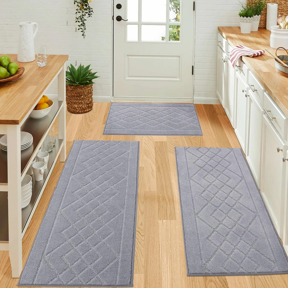 Introducing our premium kitchen rugs, the perfect addition to your home decor. Crafted with utmost care and attention to detail, these rugs are designed to provide both style and functionality. Made from high-quality Polyester, they are soft, comfortable, and durable, making them ideal for use in the kitchen, bathroom, laundry room, or anywhere else in your home.Featuring a non-slip backing, these rugs ensure safety and stability, preventing any accidental slips or falls. The absorbent fabric quickly soaks up spills and splashes, keeping your floors clean and dry. With their stain-resistant and colorfastness properties, these rugs will maintain their vibrant appearance even after multiple washes. Whether you place them in front of your sink, at the entrance of your kitchen, or in your bathroom, these rugs will add a touch of elegance to any space.Not only are these rugs functional, but they are also easy to maintain. Simply toss them in the washing machine for a quick and convenient clean. The rug's durable construction ensures long-lasting performance, making them a wise investment for your home. Whether you're looking for an entry rug, kitchen mat, bathroom rug, or hallway runner, our versatile kitchen mat has got you covered.Enhance your home with our premium quality, non-slip, and absorbent kitchen runner rug. Experience the perfect blend of comfort and style while keeping your floors protected and clean. SOFT and NON-SLIP:The high density Polyester provides comfortable and soft feeling.Additionally, Our non skid kitchen rugs feature TPR non-slip backing,which can firmly keep them in place, preventing shifting or slipping.Please make sure that the floor is clean and dry before placing DURABLE and STAIN RESISTANT:Our kitchen floor mat is made of wear-resisting Polyester fibers. The tight sewing and high quality material ensure the durability and colorfastness. The rugs for kitchen with great absorbency and stain-resistant properties protect the floor from dampness, sauces or food particles MASHINE WASHABLE:Our non skid washable kitchen rugs are easily cleaned.You can clean the kitchen carpet by vacuum.Also,they are machine washable.fiber isn’t easy to shed because of edge locking technology.Our mat for kitchen is durable for long time. kitchen mat still maintains shape and colors HIGHLY ABSORBENT:Our kitchen mats for floor can efficiently absorb spilled water because of Polyester fiber double-layer design.This makes them a perfect solution for areas with high humidity or frequent spills,such as kitchens,sink,laundry rooms and bathrooms WARM PROMPT:We are always dedicated to providing you with premium kitchen floor rugs.If you have any questions or concerns, please