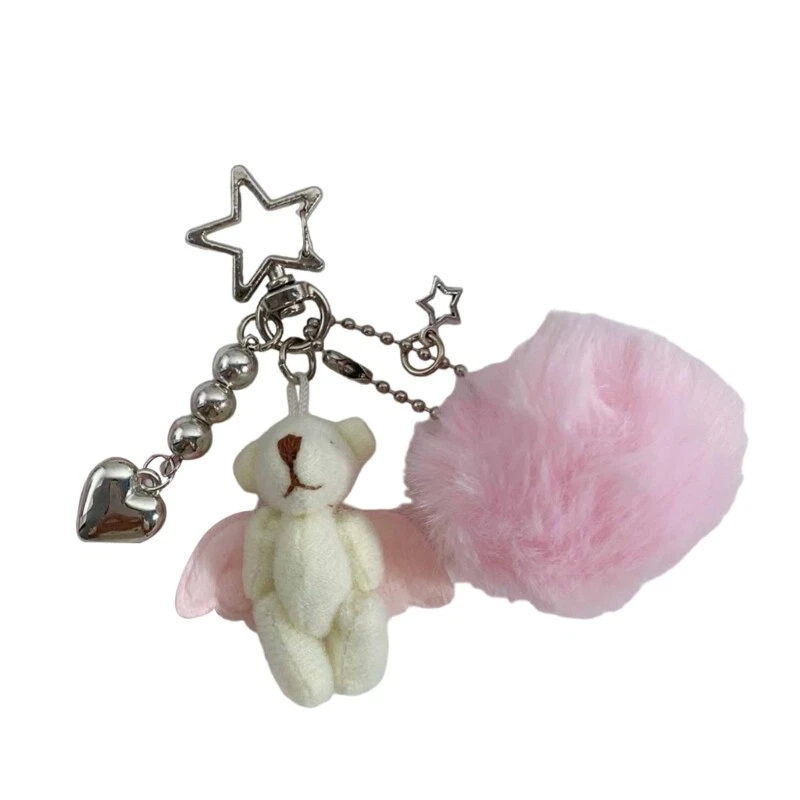 This adorable plush bear has become my new favorite accessory! The soft texture feels amazing and the pompoms add such a fun pop of color to my bags. It's surprisingly durable and hasn't shed at all. I love how it instantly brightens up my keys or backpack - such a cheerful little companion that always gets compliments!