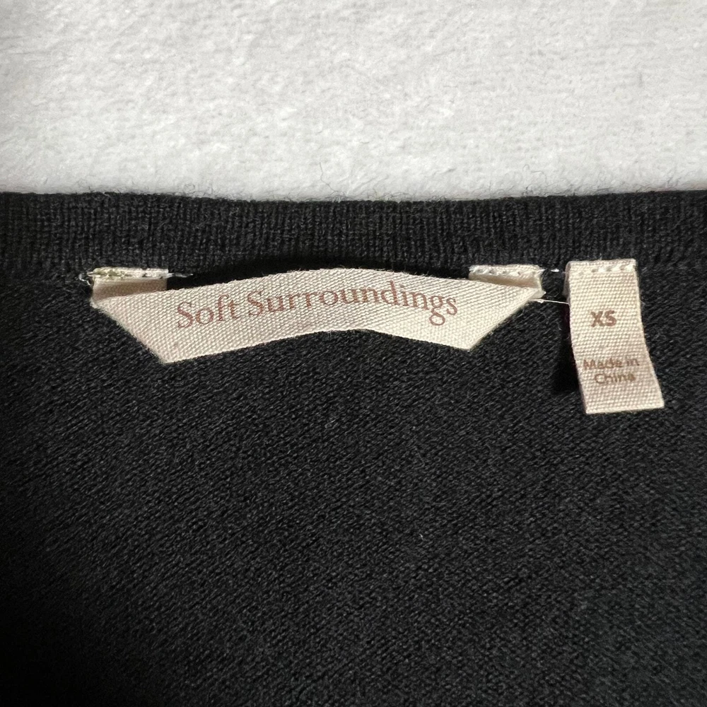 Soft Surroundings V-Neck Wool Blend Lace Trim Sweater Size X-Small Neutral CONDITION: Pre-Owned. Excellent Used Condition. FLAWS/ALTERATIONS: No flaws. COLOR: Black SIZE: Women’s Size X-Small DETAILS: V-Neck Long sleeve Lace trim on sleeves and body Stretch Wool blend Pull over MEASUREMENTS: Chest: 18.5" Full Length: 28.5" **All measurements are approximate and are taken flat** MATERIAL: BODY: 32% Nylon 28% Cotton 27% Wool 13% Viscose LACE: 59% Nylon 18% Viscose 17% Polyester 6% Cotton Bundle 2 OR MORE items to save more! Reasonable offers are welcomed! TAGS: Casual Comfy Fall Winter Contemporary Minimalist Boho Bohemian Cottagecore Neutral Basic Effortless Layers