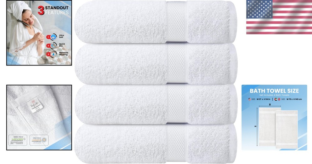 Elegant Solid White Bath Towels - 4-Piece Soft Cotton Set, Perfect for Home ‹ › ‹ › ‹ › ‹ › ‹ › ‹ › ‹ › ‹ › ‹ › Elegant Solid White Bath Towels - 4-Piece Soft Cotton Set Indulge in Luxury with our ultra-soft and plush bath towels set made from 100% ring-spun cotton, designed to elevate your bathing experience with unparalleled comfort. Features: Set includes 4 bath towels, each crafted for ultimate softness and absorbency. Made from 100% ring-spun cotton for a plush feel against your skin. Highly absorbent and quick-drying, ensuring you stay cozy yet dry. Durable construction with double-stitching to withstand daily use without losing shape or color. Elegant solid white color complements any bathroom decor, making it a versatile addition to your home. Perfect for use at home, the gym, the beach, or as a luxurious gift. Benefits: Pamper yourself with the soft and plush texture that feels great on your skin. Versatile design that fits seamlessly into any environment. Built to last, ensuring you enjoy long-lasting comfort. Stylish packaging makes it an ideal gift for any occasion. Hassle-free return policy for your peace of mind. Why Choose Our Elegant Bath Towels? Transform your everyday routine into a pampering experience with our Elegant Solid White Bath Towels. Crafted from the finest materials, each towel in this 4-piece set combines luxury with practicality, ensuring your comfort is never compromised. Whether you’re drying off after a bath or packing for a day at the beach, these towels promise to exceed your expectations. Indulge in the ultimate softness, elegance, and functionality—experience the luxury of our bath towels today! Shipping Free & Fast Shipping - We offer free shipping to most of the USA with a normal delivery time of 3-7 days. However, due to the current situation, additional delivery time (up to 3 weeks) may be required for some items. Alternative Carriers - We may use alternative carriers (e.g. USPS, FedEx, UPS, etc.) to ensure your package arrives safely and on time. Due to the use of multiple carriers, we are unable to provide a tracking number automatically. Handling Time - Orders are processed and shipped within 1-2 business days of receiving cleared payment. Shipping Restrictions - Shipping to Alaska, Hawaii, Puerto Rico, Guam, and other US territories may incur shipping charges or delivery restrictions. Please contact us before ordering, or your order can be refunded/cancelled. State Restrictions - There may be restrictions based on your state of purchase. For example, certain items may not be shipped to California due to state regulations. Contact for Tracking Updates - If you require tracking updates or have any concerns about the delivery of your order, please feel free to contact us, and we will be happy to assist you. Return 30-Day Hassle-Free Returns - We want you to be completely satisfied with your purchase. If you are not, you can return the item within 30 days of receiving it for a full refund or exchange. Easy Return Process - To start a return, simply contact us and we will provide you with a prepaid return shipping label and detailed instructions. Restocking Fee - There are no restocking fees for returns. However, the buyer is responsible for return shipping costs if the return is not due to a seller's error. Refund Processing Time - Refunds will be processed within 5 business days of receiving the returned item in its condition. Payment We accept all major credit cards, PayPal, and Apple Pay for your convenience. Your payment information is secure and encrypted to ensure a safe and seamless transaction. Please complete your payment within 3 days of purchase to avoid any delays in shipping. Feedback Your feedback is extremely important to us. We strive to provide the best products and customer service possible. If you are satisfied with your purchase, please take a moment to leave us a positive review. If you have any concerns or issues with your order, please contact us before leaving negative feedback. We are committed to resolving any problems and ensuring your satisfaction. Contact Us If you have any questions or concerns, please feel free to out to our customer support team. You can contact us through the eBay messaging system. We are available Monday to Friday, 9:00 am to 5:00 pm EST, and we will do our best to respond to your inquiry within 24 hours. Buy it now and enjoy a pleasant shopping experience! Unit Quantity: 4 Material: 100% Cotton,Ring-Spun Cotton Set Includes: Bath Towel Theme: Durable Room: Any Room,Bathroom,Indoor/Outdoor,Gym,Beach Features: Soft,Absorbent,Quick-Drying,Durable,Double-Stitching,Lint Free Softness: Soft,Extra Soft Department: Adults,All Ages Care Instructions: Do Not Iron,Do Not Tumble Dry,Dry Clean Only,Machine Wash Type: Bath Towel Color: Brilliant White Size: 27 in x 54 in Pattern: Solid Shape: Rectangle Number of Items in Set: Four-Piece Unit Type: lb