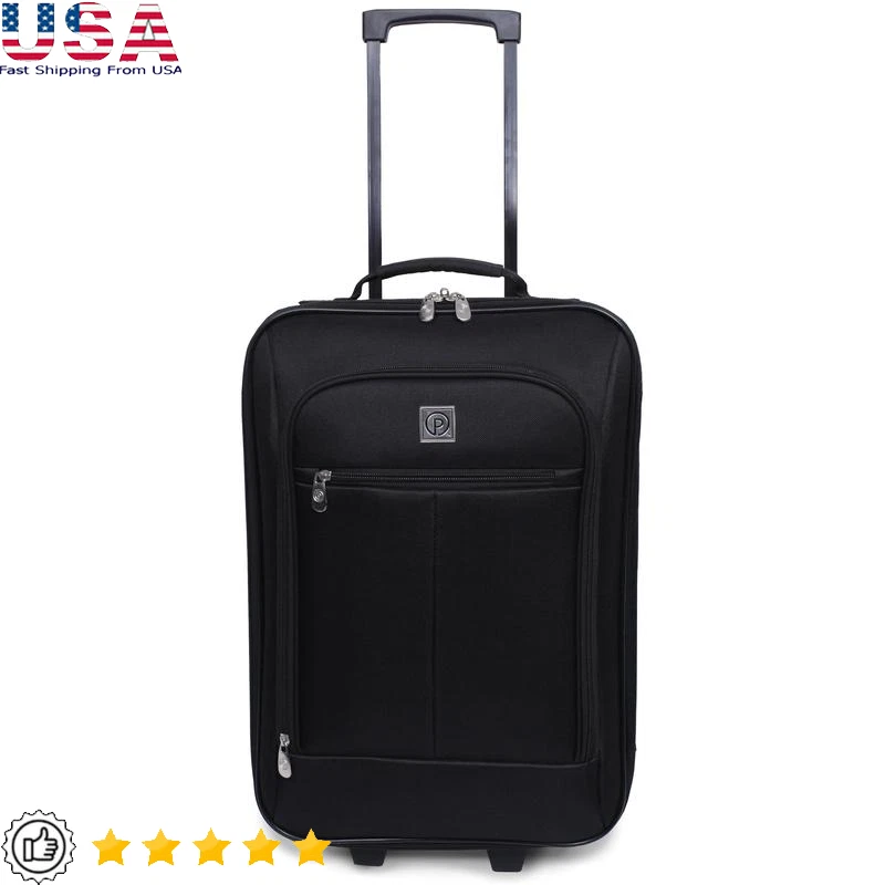 You may also like 2-Head LED Motion Activated Security Light 2500 Lumen Adjustable Sensor Outdoor 33.51 USD Free shipping Matte Coupe Stoneware Dinner Plates Set of 6 Durable Dishwasher Microwave Safe 38.21 USD Free shipping 5-Tier Heavy Duty Wire Shelf Adjustable 3000lb Capacity Industrial Storage Rack 137.95 USD Free shipping Small Space Writing Desk W/ Shelves True Black Oak Finish Home Office Solution 44.5 USD Free shipping Folding Hand Truck Dolly Cart 154lb Capacity Telescoping Handle Lightweight New 72.9 USD Free shipping Folding Kid's Picnic Activity Table for Ages 3-8 Play Crafts Bedroom Classroom 79.65 USD Free shipping Reversible Memory Foam Mattress Topper 7-Zone Pressure Relief Queen Size New 47.22 USD Free shipping Electric Citrus Juicer 100W Powerful Squeeze Lemon Orange Grapefruit Easy Clean 45.89 USD Free shipping 44 Piece Stainless Steel Flatware Set Floral Design Dishwasher Safe Dining New 72.9 USD Free shipping 3-Piece Cozy Knit Reversible Microfiber Comforter Set Insulating Warm Full/Queen 33.75 USD Free shipping High Quality Indoor Runner Rug Non-Slip Backing Machine Washable Paisley Design 53.97 USD Free shipping Indoor Decorative Ceramic Ribbed Vase Flowers Silk Arrangements Farmhouse Decor 30.29 USD Free shipping Never fear, the affordable softside carry-on luggage is here! Make expensive baggage fees a thing of the past with the snug and sleek pilot carry-on case . Find everything you need for a quick trip with this one bag. Extend the telescopic handle to navigate this bag with ease. This 18-inch carry-on piece also includes two low profile in-line skate wheels that make traveling a dream. This carry-on has a stylish and sleek black finish that gives the appearance of a high-end piece without breaking the bank. With added reinforced corners and handle you'll be able to take to the skies with confidence. com. Eliminate expensive baggage fees with the convenient soft side carry-on size Move quickly and easily with the telescopic handle system and low profile wheels Quickly grab your travel documents with the front zippered accessory pocket Be comfortable carrying your luggage with the padded top carry handle. An interlocking zipper system helps ensure your belongings stay safe and secure Interior dimensions (without wheels): 12. 5"L x 6. 5"D x 18"H Full exterior dimensions (with wheels): 12. 5"L x 6. 5"D x 19. 25"H You may also like Ceramic Tabletop Vase Pitcher Style Durable Home Decor Flower Plant Display New 32.99 USD Free shipping 12 Piece Kitchen Knife Utensil Set High-Carbon Stainless Steel W/ Caddy New 36.14 USD Free shipping Open Shelf Nightstand Easy Assembly Storage Compartment Modern Bedroom Decor New 40.45 USD Free shipping Programmable Slow Cooker W/ Defrost Function & Temperature Probe 6 Quart New 77.44 USD Free shipping Vegan Leather Decorative Pillow 14x24 Accent Cushion Home Décor 2 Pack New 40.45 USD Free shipping Touchless Kitchen Trash Can 13 Gal Motion Sensor Plastic Wastebasket Indoor Use 40.42 USD Free shipping Compact Golf Umbrella 47 Inch Windproof Lightweight Weather Protection New 30.91 USD Free shipping Memory Foam Bath Mat Absorbent Quick Dry Non-Slip Floor Rug Machine Washable New 28.34 USD Free shipping 12-Piece Cotton Towel Set Soft Absorbent Fade Resistant Machine Washable New 26.96 USD Free shipping Modern 3-Light Vanity Fixture Dimmable T6 LED Frosted Glass Energy Saving New 99.2 USD Free shipping Mildew Resistant Primer Sealer Stain Blocker Water-Based Kitchens Bathrooms New 40.46 USD Free shipping 3 Tier Clear Utility Storage Cart Rolling Mobile Organizer BPA Free PET New 33.72 USD Free shipping
