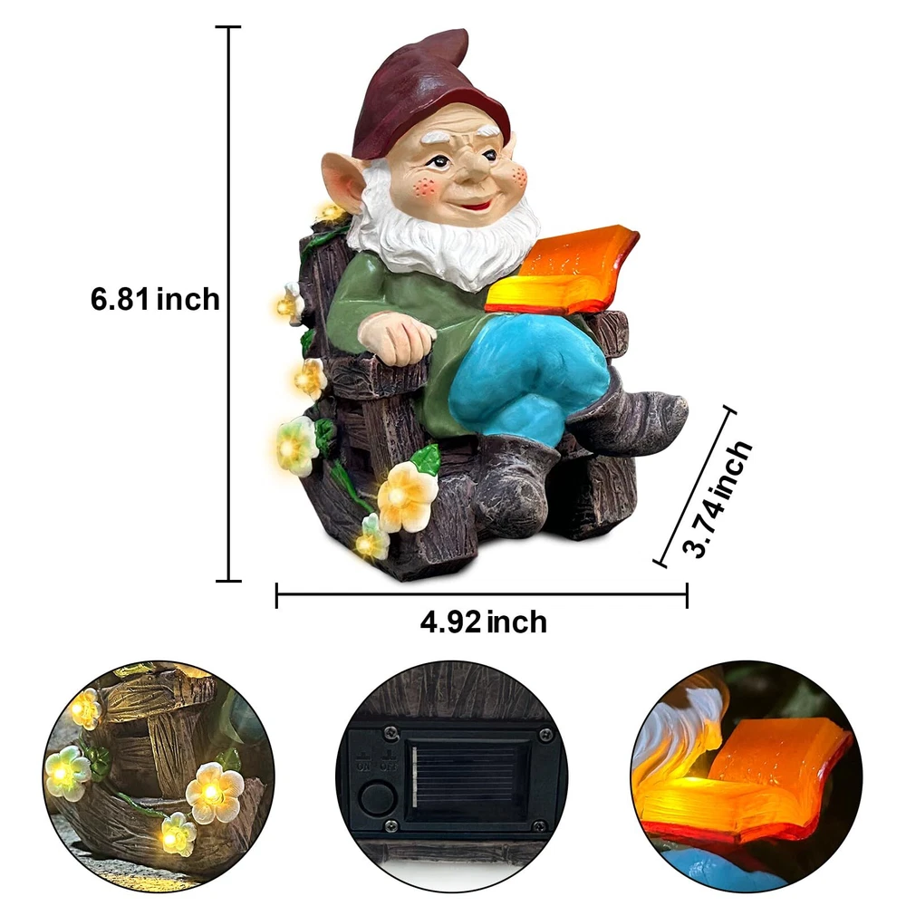 Solar Garden Gnome Statues Outdoor - Fairy Resin Gnomes Succulents Figurines Lights Yard Art Sculpture Home Decor for Outside Patio Balcony Lawn Ornaments, Ideal Christmas Birthday Housewarming Gifts Solar Garden Gnome Statues Outdoor - Fairy Resin Gnomes Succulents Figurines Lights Yard Art Sculpture Home Decor for Outside Patio Balcony Lawn Ornaments, Ideal Christmas Birthday Housewarming Gifts Free Shipping 24/7 Customer Service Premium Quality ENERGY SAVING GARDEN GNOMES OUTDOOR - Brighten up your balcony with this magical smiling gnome that must be a great conversation piece. Interesting garden gnome collects sunlight during the day for 6-8 hours to give your garden a whimsical look at night for 8-10 hours. For the first use, simply peel off the protective film of the solar panel, then keep the switch of the gnome garden statue in the “ON” position all the time. GNOMES FAIRY GARDEN ACCESSORIES OUTDOOR - What a funny gnome statue! This attractive gnome garden decor for outside features an delightful lawn gnome with a friendly smile sits on a exquisite rocking chair cozily and reads a glowing magic book. Decorated with colorful succulents LED lights, these charming garden figurines outdoor decor sparkle at the dark environment. Warm yellow lighting effect exudes a fairy tale feel, creating a lively and relaxing scene on a quiet winter night. DURABLE RESIN GARDEN GNOMES OUTSIDE - Made of sturdy resin materials, our exquisite outdoor figurine lights with a fine engraving craftsmanship and an excellent weather-resistant performance, will stay with you for a long time. Cute garden statues will be enchanting landscaping projects on your windowsill, terrace, pond, farmhouse, front porch, backyard, flowerbeds, pathways or sun rooms, whether inside or outside your house, attracting your guests’ attention easily. A LOVELY NOVELTY GIFTS - Our naughty gnomes decorations for yard are eye-catching presents on Christmas, Thanksgiving, Birthday Party, Housewarming, Anniversary or Any Celebration, bringing lots of warmth, relaxation and happiness to your Family Members/ Friends/ Mom/ Grandpa/ Women/ Grandma/ Wife/ Daughter/ Gnome Collectors/ Garden Lovers. Everyone standing by the side of these gnome christmas decorations, will fall in love with them! SIZE AND PROFESSIONAL SERVICE - Measuring 3.74 x 4.92 x 6.81 inch, these gnomes solar garden statues for outside weigh about 0.88 lbs, will make your home more vibrant. Each gnome solar decor is well protected in a foam box to prevent damage during transportation. We are committed to providing you with a satisfactory customer service. So please order with confidence. Let’s upgrade your living area together with this gnome outdoor garden decor! Shipping Information We offer FREE shipping on all orders! We ship within three business days of payment, usually sooner. We use a selection of shipping services such as UPS, FedEx, USPS, etc. We only ship to the lower 48 states, no APO/FPO addresses or PO Boxes allowed. Return Policy You can return a product for up to 30 days from the date you purchased it. Any product you return must be in the same condition you received it and in the original packaging. Please keep the receipt. Feedback Customer satisfaction is our top priority. If you have any problem with your order, contact us immediately. We respond to all inquiries within 24 hours and will do our utmost to ensure you are fully satisfied with your shopping experience. Contact Us If you have any queries, please contact us via eBay. Our dedicated customer support team prioritizes your satisfaction and guarantees a response within 24 hours on weekdays. Discover Dobby's Deals! Thank you for choosing Dobby for your shopping needs. Explore more premium items in Dobby's Store today!