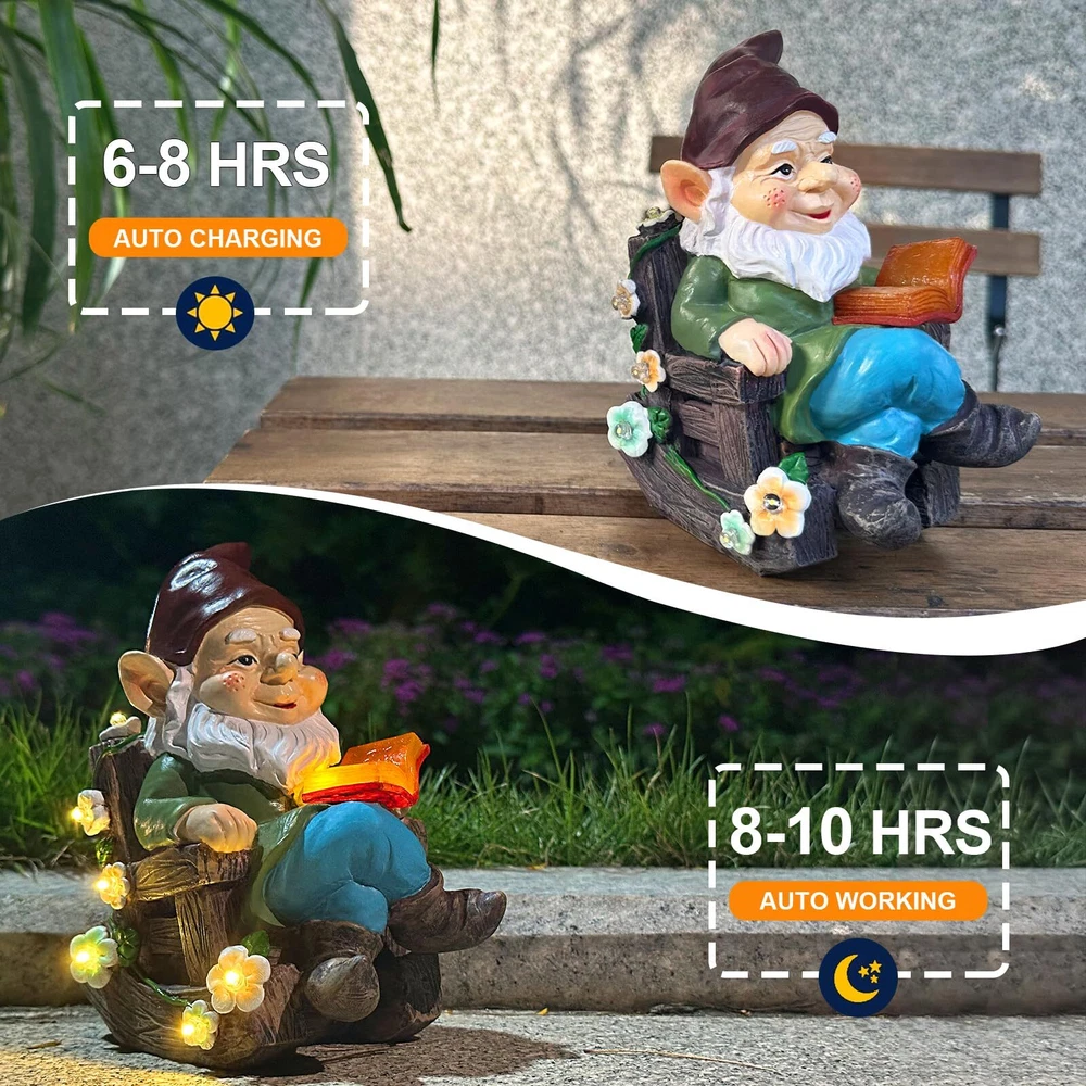 Solar Garden Gnome Statues Outdoor - Fairy Resin Gnomes Succulents Figurines Lights Yard Art Sculpture Home Decor for Outside Patio Balcony Lawn Ornaments, Ideal Christmas Birthday Housewarming Gifts Solar Garden Gnome Statues Outdoor - Fairy Resin Gnomes Succulents Figurines Lights Yard Art Sculpture Home Decor for Outside Patio Balcony Lawn Ornaments, Ideal Christmas Birthday Housewarming Gifts Free Shipping 24/7 Customer Service Premium Quality ENERGY SAVING GARDEN GNOMES OUTDOOR - Brighten up your balcony with this magical smiling gnome that must be a great conversation piece. Interesting garden gnome collects sunlight during the day for 6-8 hours to give your garden a whimsical look at night for 8-10 hours. For the first use, simply peel off the protective film of the solar panel, then keep the switch of the gnome garden statue in the “ON” position all the time. GNOMES FAIRY GARDEN ACCESSORIES OUTDOOR - What a funny gnome statue! This attractive gnome garden decor for outside features an delightful lawn gnome with a friendly smile sits on a exquisite rocking chair cozily and reads a glowing magic book. Decorated with colorful succulents LED lights, these charming garden figurines outdoor decor sparkle at the dark environment. Warm yellow lighting effect exudes a fairy tale feel, creating a lively and relaxing scene on a quiet winter night. DURABLE RESIN GARDEN GNOMES OUTSIDE - Made of sturdy resin materials, our exquisite outdoor figurine lights with a fine engraving craftsmanship and an excellent weather-resistant performance, will stay with you for a long time. Cute garden statues will be enchanting landscaping projects on your windowsill, terrace, pond, farmhouse, front porch, backyard, flowerbeds, pathways or sun rooms, whether inside or outside your house, attracting your guests’ attention easily. A LOVELY NOVELTY GIFTS - Our naughty gnomes decorations for yard are eye-catching presents on Christmas, Thanksgiving, Birthday Party, Housewarming, Anniversary or Any Celebration, bringing lots of warmth, relaxation and happiness to your Family Members/ Friends/ Mom/ Grandpa/ Women/ Grandma/ Wife/ Daughter/ Gnome Collectors/ Garden Lovers. Everyone standing by the side of these gnome christmas decorations, will fall in love with them! SIZE AND PROFESSIONAL SERVICE - Measuring 3.74 x 4.92 x 6.81 inch, these gnomes solar garden statues for outside weigh about 0.88 lbs, will make your home more vibrant. Each gnome solar decor is well protected in a foam box to prevent damage during transportation. We are committed to providing you with a satisfactory customer service. So please order with confidence. Let’s upgrade your living area together with this gnome outdoor garden decor! Shipping Information We offer FREE shipping on all orders! We ship within three business days of payment, usually sooner. We use a selection of shipping services such as UPS, FedEx, USPS, etc. We only ship to the lower 48 states, no APO/FPO addresses or PO Boxes allowed. Return Policy You can return a product for up to 30 days from the date you purchased it. Any product you return must be in the same condition you received it and in the original packaging. Please keep the receipt. Feedback Customer satisfaction is our top priority. If you have any problem with your order, contact us immediately. We respond to all inquiries within 24 hours and will do our utmost to ensure you are fully satisfied with your shopping experience. Contact Us If you have any queries, please contact us via eBay. Our dedicated customer support team prioritizes your satisfaction and guarantees a response within 24 hours on weekdays. Discover Dobby's Deals! Thank you for choosing Dobby for your shopping needs. Explore more premium items in Dobby's Store today!