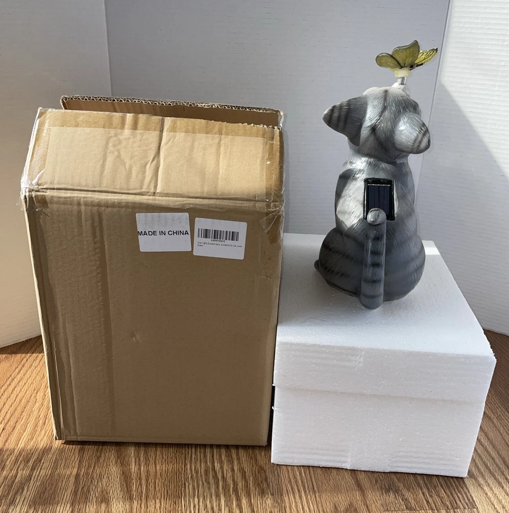 Solar Garden Statue Loving Cat Color Changing LED Lights Outdoor Decor Yard