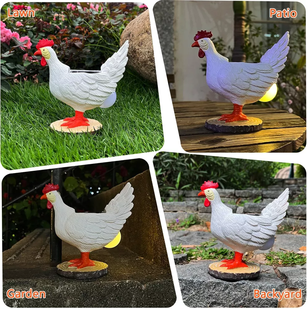 Solar Garden Statues Outdoor Decor - Miniature Chicken Egg Lamp Figurine Thanksgiving Decorations Chickens Lights with Egg in Butt LED 3D Sculpture for Patio, Lawn - Unique Christmas Housewarming Gift Solar Garden Statues Outdoor Decor - Miniature Chicken Egg Lamp Figurine Thanksgiving Decorations Chickens Lights with Egg in Butt LED 3D Sculpture for Patio, Lawn - Unique Christmas Housewarming Gift Free Shipping 24/7 Customer Service Premium Quality 【One-of-Kind Chicken Egg Lamp Presents】- In many cultures, hens symbolize great maternal love, kindness and the continuation of life, making the chicken lamp with egg in butt an excellent gardening gift for mother, grandma, wife, daughters and sons to show your love and appreciation on special occasions like Christmas, Mother’s day, birthday, wedding anniversary, Thanksgiving, Valentine's Day and Halloween. Also suitable to be a housewarming gift to your friends for its cozy lighting. 【Easy to Operate Solar Garden Decoration】-This lifelike LED solar chicken decor is charged by a solar panel in 6-8 hours during the daytime and illuminating your garden for 8-10 hours when night falls with a warm glow without worrying about electricity bills. Simply leave the switch in the “ON” position during using, then place chicken egg lamp butt outdoor under direct sunlight for full charging. 【Robust Materials for Multi-scene Uses】- Made of durable resin material in an eco-friendly hand painted finish, our solar chicken egg lamp is sturdy and weather resistant that will stand the test of time to be an eye-catching addition to your patio, porch, lawn, balcony or corridors. Whether setting in your modern style, country style house, or ranch, farm, the artfully painted chicken lights showcases your decorative aesthetics. 【Chicken Laying Egg Lamp Garden Statues】- An elegant white hen stands on a tree stump, laying a glowing egg emitting soft and glare-free light, which brings color, warmth and vitality to your peaceful courtyards and keeps you stay relaxed. The round tree stump base is wide enough to ensure gentle solar chicken with egg stands steadily without wobbling. 【Attention and Satisfactory Service】 - ATTENTION: Measuring 6.1*3.15*5.52 inches, our outdoor decor solar chicken laying egg lights figurines are not large-sized. Please make sure you have checked the dimensions before purchasing. At Scuyari, customer shopping experience is our priority. If you have any question about our products, just feel free to contact us and our friendly after-sales service team would be glad to help you resolve the problem in 24 hours. Shipping Information We offer FREE shipping on all orders! We ship within three business days of payment, usually sooner. We use a selection of shipping services such as UPS, FedEx, USPS, etc. We only ship to the lower 48 states, no APO/FPO addresses or PO Boxes allowed. Return Policy You can return a product for up to 30 days from the date you purchased it. Any product you return must be in the same condition you received it and in the original packaging. Please keep the receipt. Feedback Customer satisfaction is our top priority. If you have any problem with your order, contact us immediately. We respond to all inquiries within 24 hours and will do our utmost to ensure you are fully satisfied with your shopping experience. Contact Us If you have any queries, please contact us via eBay. Our dedicated customer support team prioritizes your satisfaction and guarantees a response within 24 hours on weekdays. Discover Dobby's Deals! Thank you for choosing Dobby for your shopping needs. Explore more premium items in Dobby's Store today!