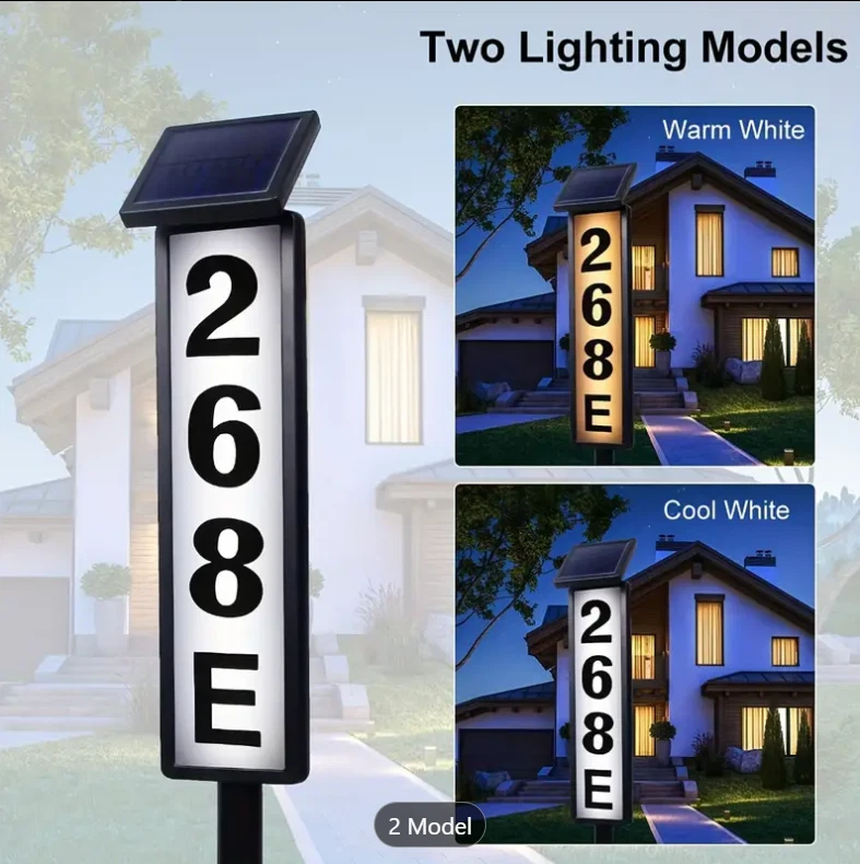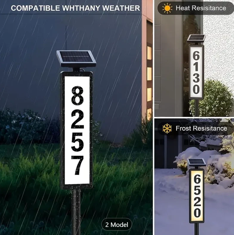1pc New Solar Digital Door Sign Light, Decorative LED House Number Light, For Houses, Villa Indicator Lights, Solar Powered [Height 35 Inches] Specification: Control Method: Light Sensor Embellishment: Other Embellishments Finish Type: Polished Special Features: Low-voltage Fixture Type: Detachable Light Fixture Form: Floodlight Lamp Shade Material: Acrylonitrile Butadiene Styrene Included Components: LED Lens Material: Acrylonitrile Butadiene Styrene Power Supply: Solar Charging Remote Control Included: No Battery Properties: Solar Battery Solar Battery: 2* 600mah Nickel Battery Solar Panel:2v 100mah Polysilicon charging time:6-8h Lighting Time:8h Features: Solar Powered: This doorplate light is powered by solar energy, making it eco-friendly and energy-saving. It charges during the day and lights up automatically at night. Illuminated House Numbers: The light illuminates your house numbers, making it easy for visitors, delivery drivers, and emergency services to find your home even in the dark. Ground Stake Sign: The light comes with a ground stake, allowing you to easily install it in your yard or garden. It's a perfect way to display your house number and add a stylish touch to your outdoor space. Waterproof: The doorplate light is designed with a waterproof feature, making it durable and suitable for outdoor use, even in rainy or snowy weather. Warm Tips: (1)Please note, the solar light is designed to work when the environment gets dark. The selected location should not benear a light source such as porch light or street light,as these might keep the solar lights from automatically turning on. (2)Although the battery has been charged by the manufacturer, the electric charge may have dropped by the time consumer receives the product, Please let the solar light charge for a full day for maximum performance. (3)The surface of the solar panel must be kept clean. Dust accumulated on the surface will reduce the charging efficiency. (4)If the solar light stops working after it has been used for a long time,the battery may need to be replaced. You may openthe battery cover and replace it with a new rechargeable battery. (5) If the solar light does not tum on automatically at night after 6 hours of charging during the day, please check the followings. Make sure the power switch is at the "W* or “C” position. Check the battery and make sure the battery contact the terminal securely. Package List: 1 * Solar house number light