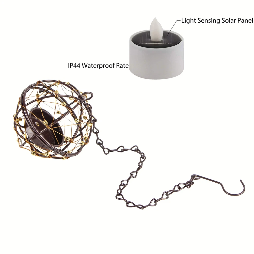 Solar Lights Outdoor Hanging Lanterns, ZHONGXIN Beaded Copper Wire Ball Candle Holder with Solar Tea Lights, Perfect for Home, Garden, Backyard, Pergola, Patio Umbrella, Tree, Window Decor-Set of 4 Set of 4 hanging candle lantern lights, 3.15 inches diameter copper wire ball holder, 12 inches long hanging chain with hook, looks gorgeous and easy to hang anywhere you want. Includes Four (4) Solar Powered LED tea lights candles, Illuminates for up to 5 hours on a full Charge, Eco-environment , and energy saving. Flickering and amber warm LED color, Flameless and smoke-free, provide a realistic flickering effect. IP44 Waterproof Rate; Protected against water splashed from all directions, very suitable for outdoor use. We offer a 1-Year Quality Guarantee; Please contact the seller directly if any quality issue arises, for replacement solar tea lights candles, please search asin: B07MZLNLM5 Features: 1. Solar Powered DURING THE DAY: The solar tea lights collect sunlight and convert it into electrical power, which is stored in the included rechargeable battery. AT NIGHT: Light sensing technology turns on the solar fixture. 2. Weather-resistant and Save Your Money Suitable for outdoor use. No worries about raining, snowing, frosting; No wiring needed, use energy from the sun. 3. Very Delicate & Classy Looking The copper wire and beading sparkle during the day, and there is ample light shining through the design at night, the wires create interesting patterns, sparkly orbs of warm light. Amber LED tea-light candles providing lifelike flashing effects, ideal features really a great way to add mood lighting to your house. 4. Widely Applications Solar-powered hanging lights suitable for garden, patio, yard, path, trees. you can hang them under your patio umbrella, pergola, tent, windows, etc. Specifications: Copper Wire Ball Diameter: 3.15 in. Chain Length: 12 in. LED Color: Flickering Amber LED Candle Size: 1.5 in. Dia x 1.58 in. H Material: Iron/Copper/LEDs/ABS Power Source: Solar Powered Solar Panel: 2V 30mA Storage Battery: 1PC Ni-MH 100mAh Rechargeable Battery Each Light Package Included: 4 x Copper Wire Ball Candle Holders with Chain and Hook 4 x Solar LED Tea Lights 1 x User Manual Using Tips: 1. If the lights not brightly when you received, please put the lights under the direct sunlight for recharging at first. 2. ON/OFF switch under the tea light, please turn it on before charging. 3. Please keep the surface of the solar panel clean, cause the dust will affect the charging effect. 4. The light working time and brightness depend on weather, season, environment, etc. Shipping We offer FREE shipping on all orders! We ship within Three business days of payment, usually sooner. We use a selection of shipping services such as UPS, FedEx, USPS etc. We only ship to the lower 48 states, no APO/FPO addresses or PO Boxes allowed. Local pickups and combined shipping options are not provided at this time. International buyers – please note: Import duties, taxes, and charges aren't included in the item price or postage cost. These charges are the buyer's responsibility. Please check with your country's customs office to determine what these additional costs will be prior to bidding or buying. Order Cancellation Policy * Order Cancellation Policy ** You can return a product for up to 30 days from the date you purchased it. 1. The seller reserves the right to cancel the special case only due to eBay cancellation fee. 2. The decision of seller is the final. 3. The seller will respond to the cancellation request within 2 business days. Please wait for the result of cancellation. 4. In case the cancellation is not completed by some reasons, the buyer can follow the options below to get the refund. 4.1 The buyer can reject the item when it arrives. 4.2 The buyer can send the item back to the seller within 30 days If the buyer receives item (USA Shipment ONLY). The seller will provide the FREE return label to the buyer when the buyer opens " Return Item" case on eBay by using the reason as "Change my mind" ONLY. 5. When buyer has placed the order. The order will be processed and completed by automatic warehouse system within 5 minutes. In case that buyer sends the cancellation request after 5 minutes of placing the order, the request will be rejected. **Sending direct message to cancel the order is not allowed for every case.* Return Policy - If buyer would like to return the items for refund or replacement, please CONTACT SELLER to receive the free return label from seller. The refund or replacement will be processed with the tracking number of return label which is provided by seller only. The other ways of return which are not approved by seller will not be processed for the refund or replacement. Return You can return a product for up to 30 days from the date you purchased it. Any product you return must be in the same condition you received it and in the original packaging. Please keep the receipt. Payment We accept payment by any of the following methods: eBay Payments Please pay as soon as possible after winning an auction, as that will allow us to post your item to you sooner! Feedback Customer satisfaction is very important to us. If you have any problem with your order, please contact us and we will do our best to make you satisfied. Contact Us If you have any queries, please contact us via ebay. We usually respond within 24 hours on weekdays. Please visit our eBay store to check out other items for sale! Thank you for shopping at our store.