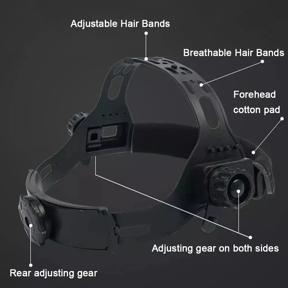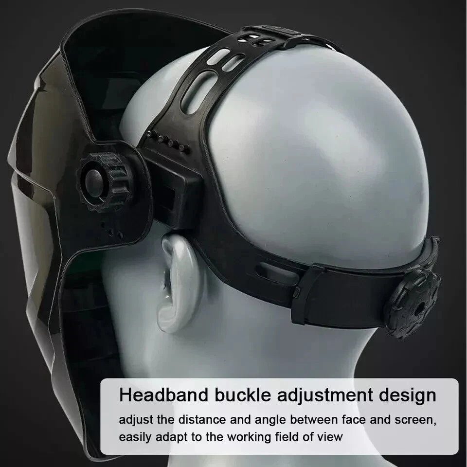 Features : Intelligent sensitive filter, automatic dimming, 0.1 second instant darkening during welding, 9-13 levels of shading effect, provide comprehensive protections. Made of polypropylene material, strong toughness, anti-drop, impact resistance, lightweight design, more comfortable to wear, and will not feel tired after long time wearing. Full lens with higher clarity, can provide panoramic true color large visual field, welding more convenient. Heat insulating facemask, 130℃ high temperature resistant, which blocks arc light, infrared light, ultraviolet and other harmful lights, and also blocks welding slags, avoids high temperature burns, protects your face and say goodbye to arc light hazards. Large inner space, easy to wear and breathable, no stuffy, no oppression. 180 degree free rotation, convenient and efficient work, can be turned up when welding gaps or when not used for a long period of time. Gear adjustment knob design, turn to adjust the tightness of the headband. Breathable adjustment band, after wearing will not appear stuffy sweat and other situations. Thickened sponge design, protect your forehead, will not be too tight, and also has a sweat absorbing and anti-slip effect. Headband buckle adjustment design, adjust the distance and angle between face and screen, easily adapt to the working field of view. Solar-powered design, can provide long endurance, long time welding also does not hurt the eyes, change light freely. Irradiation lamp design, adopts two kinds of illumination, which makes it convenient to work in the dark, suitable for electric welding, argon arc welding, etc. Features and further details Specifications: Name: Welding Facemask Material: polypropylene Battery: 1 * CR2032 battery (included) Package size: 300 * 200 * 220mm / 11.81 * 7.87 * 8.66in Package weight: 390g / 13.76ounce