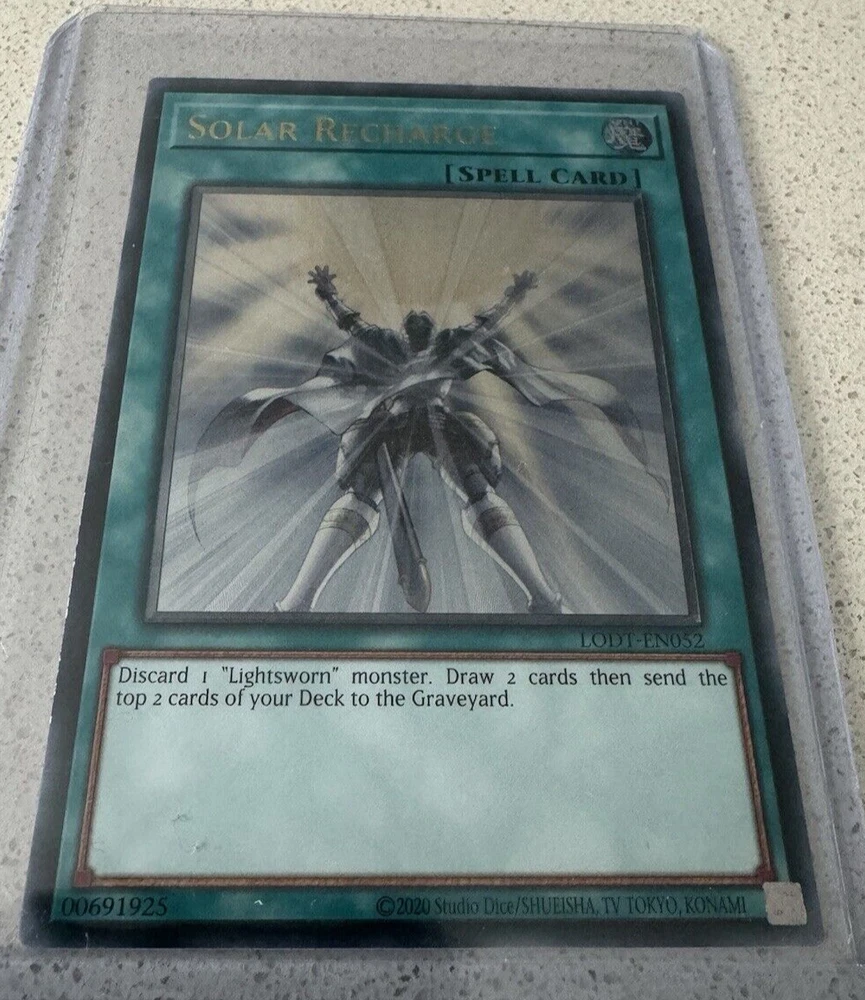 Solar Recharge ULTIMATE RARE - YuGiOh - LODT-EN052 - NEAR MINT - Free Shipping! Card is in a soft sleeve and inside another hard protective sleeve for shipping. Free Shipping for Domestic buyers.