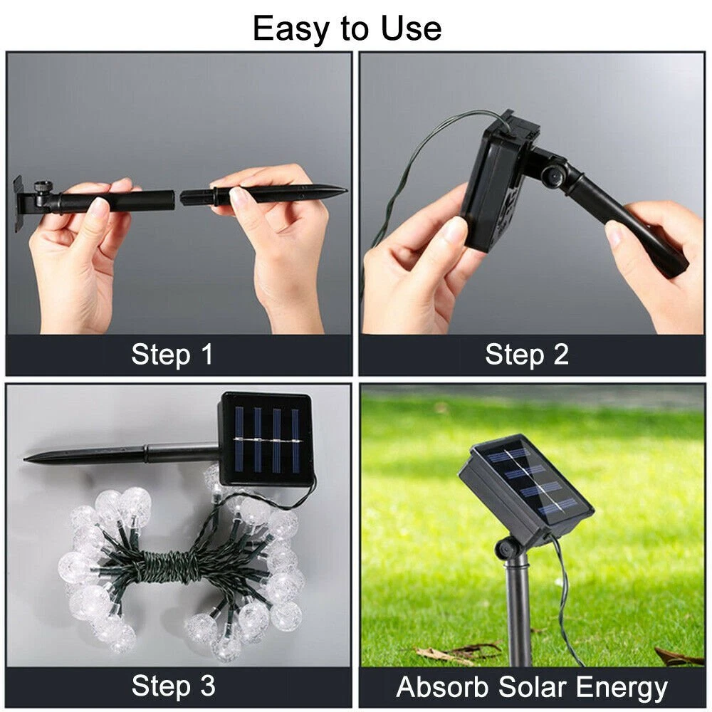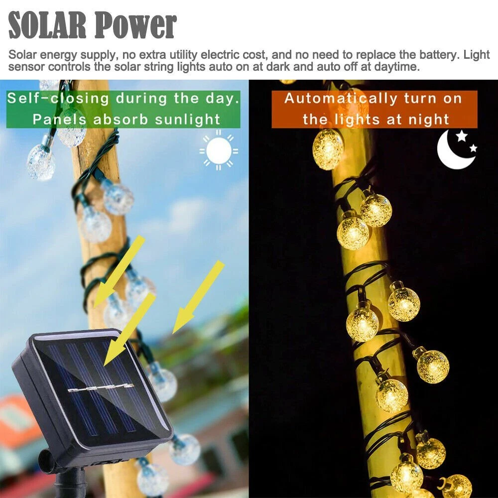 Meinuousa Your Best Online Business Partner Solar String Fairy Lights Crystal Ball Garden Patio Lawn Yard Lamp Warm White Advantage: 【 Solar Powered & Absolutely Safe 】 Built-in rechargeable 1.2v 600mAh NI-MH battery is powered by solar energy, no pollution, no radiation, just bright enough to not annoy your eyes. After longer working, the lights wont too hot, it is security for your family. 【 Durable & Longer Working Time 】 It is cost-saving and eco friendly. The waterproof led lights of strong glass and hard material are erosion-resistant. 【 Weatherproof 】 Waterproof IP65 rating, optimal decorating solution for indoor and outdoor, say goodbye to rainy day, also can withstand any server weather. 【 Easy to install 】 Auto ON at dusk auto OFF in the daytime 【 Energy Efficient & Eco-Friendly 】 Solid raindrops are neat and pretty, apply for Garden, Fence, Landscape, Pergola, Valentine's Day, and other Festive Decoration. Solar powered lights, save more electric fee for you. Specification: Charging Time: 5~8 hours Switch: ON/OFF & MODE Total Length:6.5m/25.5Ft Ball Diameter:2.5cm Features: *Larger solar panel: 1.5 times as large as others. *Lighting up to 10ours after fully charged *Intelligent Lighting Sensor. Auto on at night / Auto off at sunrise * 2 Installation options: Stick into ground & Mount on the wall * 8 Working Modes, Steady on/Chasing/ Slow fade/Twinkle etc. * 2 lighting Modes: Twinkle/Flash, Steady on. Package included: 1 x 30 LEDs Globe Solar String Lights 1 x Ground Stake 1 x Solar Panel 1 x User Manual Payment Shipping Returns Contact Us About US - We accept the payment through :Credit, debit, and gift cards, Apple Pay, Google Pay, PayPal, and PayPal Credit. - Payment must be fulfilled within 4 days after the end of auction. - Please make sure your ebay address is correct. Or not, please correct it before payment. - If you are a big customer, Please contact with us about the item's PRICE and SHIPPING. - Your feedback & suggestion is deeply appreciated, thanks. 1. Please make sure your address in ebay is correct. 2. We will only follow your address listed in the ebay orders for the shipment. 1. We can exchange the item within 30 days after you received it if it is defective. 2. Returned item must have all original packaging and accessories. 3. Buyer are responsible for the returning shipping costs. 1. We greatly appreciate your POSITIVE feedback. 2. Negative or Neutral feedback does not resolve any underlying issues that you may be experiencing as a buyer. 3. Any question or unsatisfaction please contact us with ebay message, we will sincerely solve for you. Feedback is very important to us, if you are satisfied with us, please leave us 5 star positive feedback to us. If you h have any problem, please contact us first BEFORE you give us neutral or negative feedback, so we can try our best to help you solve your problem. All rights reserved.