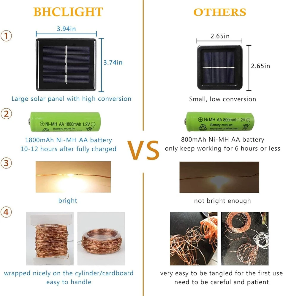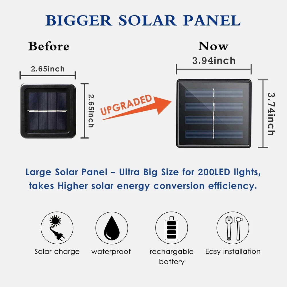 Solar String Lights Outdoor 2 Pack 144 Feet 400 LED Christmas Twinkle Waterproof Solar String Lights Outdoor, 2 Pack 144FT 400 LED Solar Christmas Twinkle Lights Outside Waterproof Copper Wire with 8 Modes Solar Fairy Lights for Garden Tree Birthday Christmas Decor(Warm White) Product Description: A set of 2 solar-powered string lights with 400 LED bulbs, covering a total length of 144 feet. These waterproof twinkle lights are perfect for adding a festive touch to outdoor spaces, ideal for holiday decorations, garden lighting, or special events. Features: Includes 2 strands of solar string lights, each 72 feet long, totaling 144 feet 400 bright LED bulbs provide warm, vibrant illumination for outdoor areas Solar-powered with an efficient panel, no need for batteries or electrical outlets Waterproof and weather-resistant, designed to withstand rain and snow Multiple lighting modes, including twinkle and steady options, for a festive ambiance Automatically charges during the day and lights up at dusk for hassle-free use Flexible, easy-to-install wire ideal for wrapping around trees, fences, and railings Create a magical outdoor atmosphere with these eco-friendly, durable solar string lights that shine through any weather. Item model number SSLCW Light Source Type LED Style Modern Number of Items 2 Power Source Solar Powered Number of Light Sources 200 Control Method Remote Theme Christmas Style Number SSLCW Controller Type button,button.and Occasion Type Engagement, Christmas, Wedding Seasons Christmas Number of Batteries 1 AA batteries required. (included) Additional Features Automatic On-Off Package Dimensions 5.24 x 5.04 x 4.45 inches; 14.39 ounces Indoor/Outdoor Usage Outdoor Material Type Plastic, Copper Light Color warm white Water Resistance Level Waterproof Occasion Engagement, Christmas, Wedding Special Feature Automatic On-Off Color Warm White Wattage 3 watts Indoor Outdoor Usage Outdoor Batteries 1 AA batteries required. (included) Voltage 3 Volts Included Components 2x 66ft 200LED String Lights, 2x Solar panel and Stake, 1 x Instruction manual Style Name Modern Size 2 Pack(200LED) Shipping Fast shipping is very important for us. Our standard USA shipping service is FREE. Your order will be shipped within 1-2 business days upon full payment received. Your order will be delivered within 1-3 business days after the handling time. We only ship to the confirmed address. We reserve the right to cancel any order for any reason at any time. We are not responsible for undeliverable addresses. Returns and payment We offer a 30 days return policy from checkout winning date. FeedBack Your feedback very important to us, after you get your package and you are satisfied with our service please leave us positive feedback If you have any problem with your order / any questions please before leave any type of feedback For any questions, using eBay contact system Please visit our eBay store to check out other items for sale! Thank you for shopping at our store.
