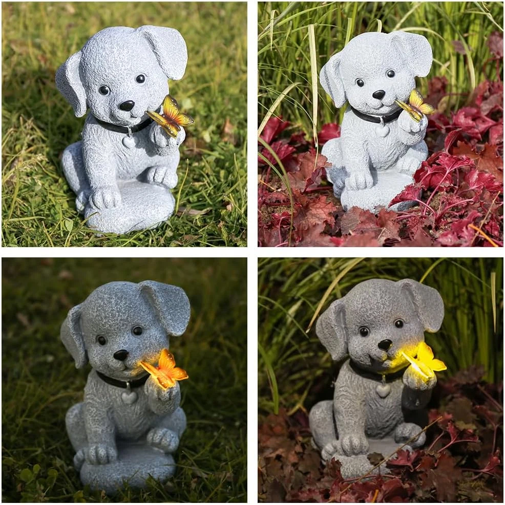 Solar-Powered Dog Lantern Statue for Outdoor Garden Decor Spring Theme