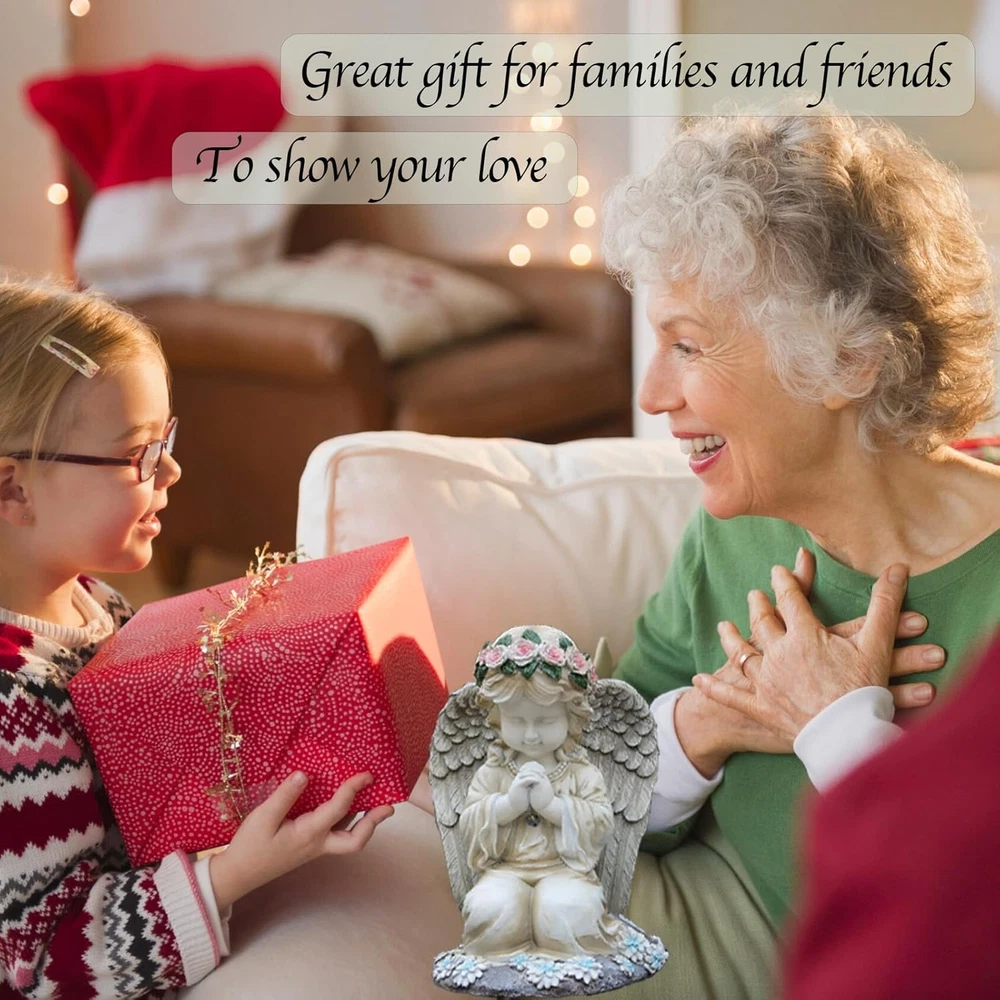 【 Beautiful Angel Garden Statues】This angel garden decoration is a unique design,that a kneeing angel with wings is praying ,The crafted design and workmanship make her very beautiful.And it makes a very peaceful and fairy feeling.Imagine how harmonious it would be to have such a lovely angel in your home. 【Durable and Waterproof】The solar angle sculpture is made of high quality resin, which is durable and weather resistant. The whole product is IP44 waterproof, So you can place it outside in any weather conditions. 【Peffect Size】The statues is in perfect size,measured 8.07in*6.10in*5.5in,and can be used in a variety of scenes for decoration, whether it is placed indoors or outdoors on the lawn, patio, balcony and other places, it will become a focal point of your home! 【Easy To Use】This garden decoration is very easy to use, just press the switch when you use it for the first time, Then place it somewhere that can get the sunshine,the solar panel will automatically charge during the day and light up at night.When comes night the warm yellow light emanates from the angel's chest and wings, making her look very warm. 【A Great Garden Gift】This Angel Praying garden Statue is a perfect gift choice for Mom,Grandma,Wife,Daughter,Sister,Aunt,Girlfriend when Birthday Mother's Day, Father's Day,Thanksgiving Day,Valentine's Day,Christmas and ohter occasions. Product Description Cute Praying Angel Garden Statues,make your garden more beautiful ! Are you looking for an angel statues to decorate your garden? Maybe our praying angel is just your cake ! This kneeing praying angel statues is a new design and unique ; The product is made of high-density resin, sturdy and durable, and the workmanship is very beautiful and detailed; Many details of the product using the old craft, which makes it looks classic and realistic; The solar light design makes this angel girl a good garden light for your garden all night ! Great garden decoration in daytime and beautiful garden light at night . Some details of this beautiful praying angel. How to use This solar angel light is very easy to use, just press the switch once and place it in the sun, when comes night the angel will automatically light up! It usually need 6-8 hours sunshine to get full charge ,and can light up 8-10 hours when fully charged . Waterproof The solar angel sculpture is IP65 waterproof ,so you can place it outdoor in any weather like rainy or snow days, But as the switch is at the bottom, please make sure the switch area is not soaked with water when it rains heavily. Perfect size The size of the angel girl is measured 8.07 inch in hight, 6.10 inch in length and 5.5inch in width,which is very perfect ! The praying angel garden statues is good gift idea for many occasions; The unique and antique look make it a good gift for mother's day ,father's day, thanksgiving day, christmas , birthday, housewarming . It's also good choice for sympathy gift .