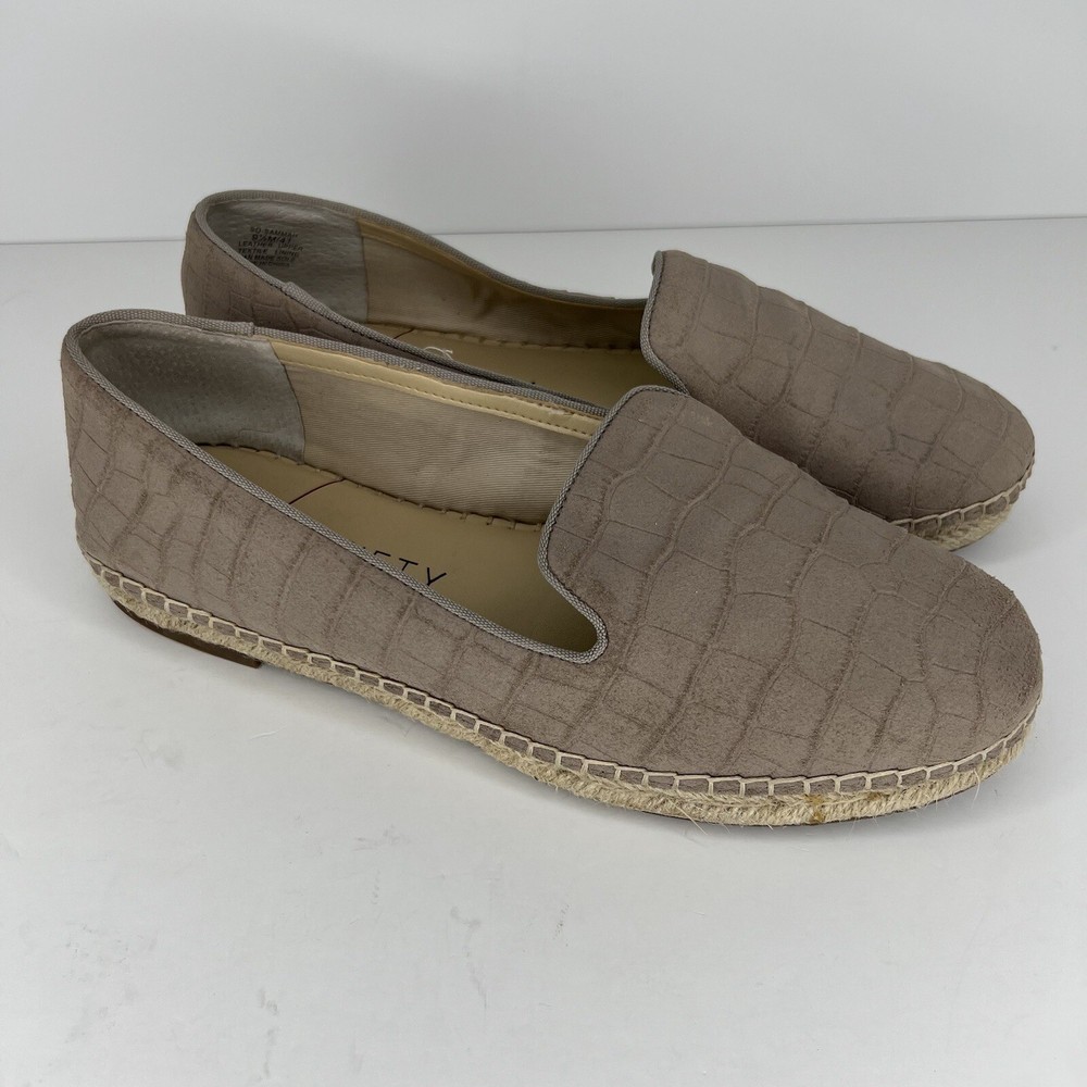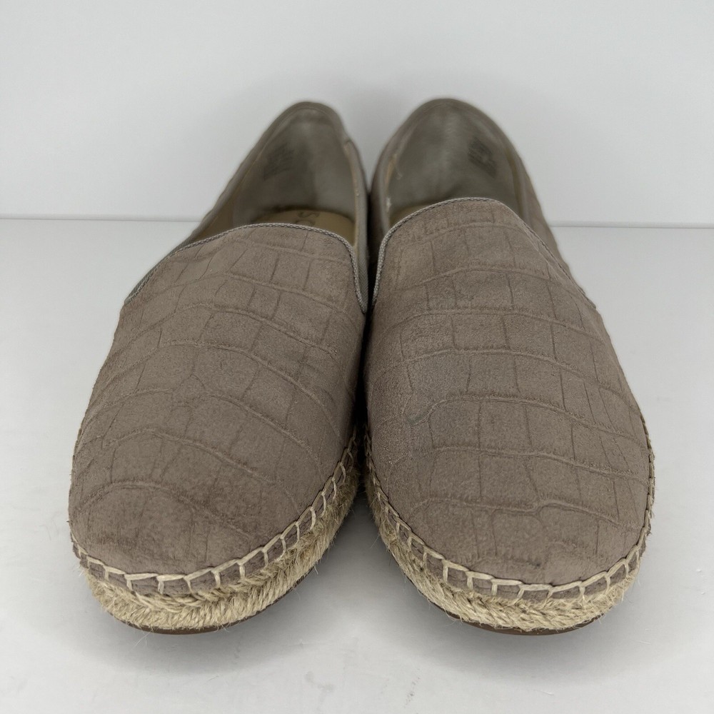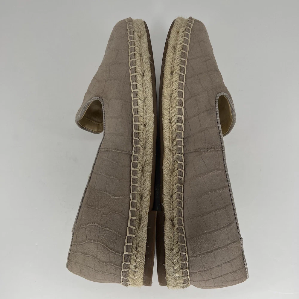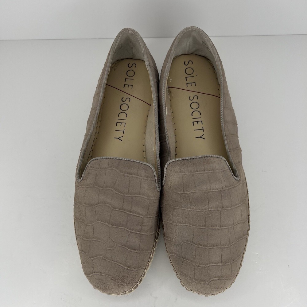 Elevate your casual look with these Sole Society Sammah espadrille flats in a stylish beige crocodile print. Slip-on these round toe smoking flats for a comfortable fit due to the cushioned and synthetic insole. The medium width rubber outsole provides a good grip and durability for these leather upper flats. Perfect for any occasion, these flats are ideal for summer, fall and spring seasons. 100% CUSTOMER SATISFACTION IS OUR GOAL! Our items are always carefully examined for condition, measured if necessary, and photographed in a climate controlled and smoke-free environment. We make every attempt to accurately describe and clearly picture the items we have for sale. Please, ALWAYS view all of the photos. We value your business and our goal is your complete satisfaction. FAST SHIPPING All items are packaged with care and shipped out the same or next business day via USPS, FEDEX, or UPS with tracking numbers so you are always informed. RETURNS We offer a 30-day return policy. All items must be unused and unopened in the condition in which they were received, with original packaging, and all accessories included for return. REVIEWS - CUSTOMER SATISFACTION - COMMUNICATION We aim to make you happy. After you receive your shipment, please leave a positive review . If you have concerns or questions about your order, please contact us so we can resolve the issue. We will do our best to make you satisfied. THANK YOU FOR YOUR BUSINESS!