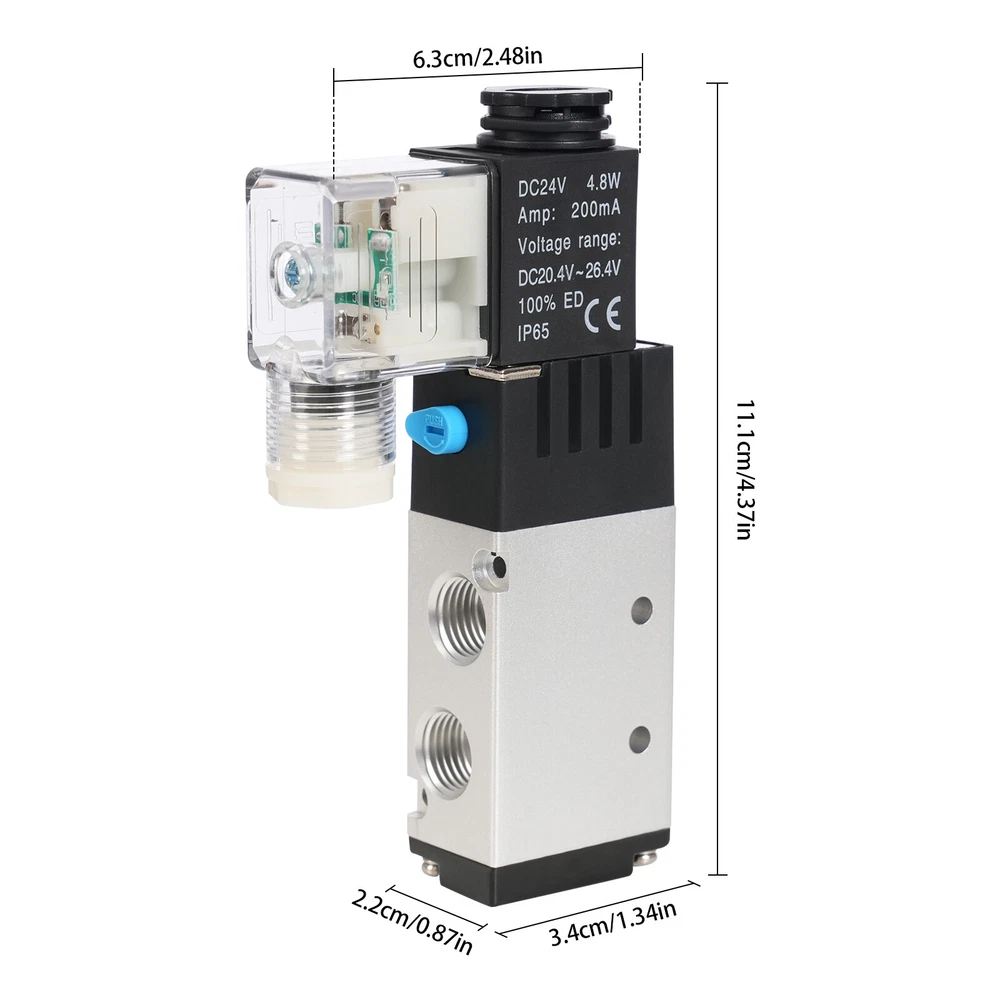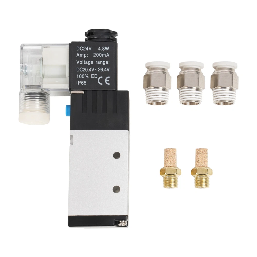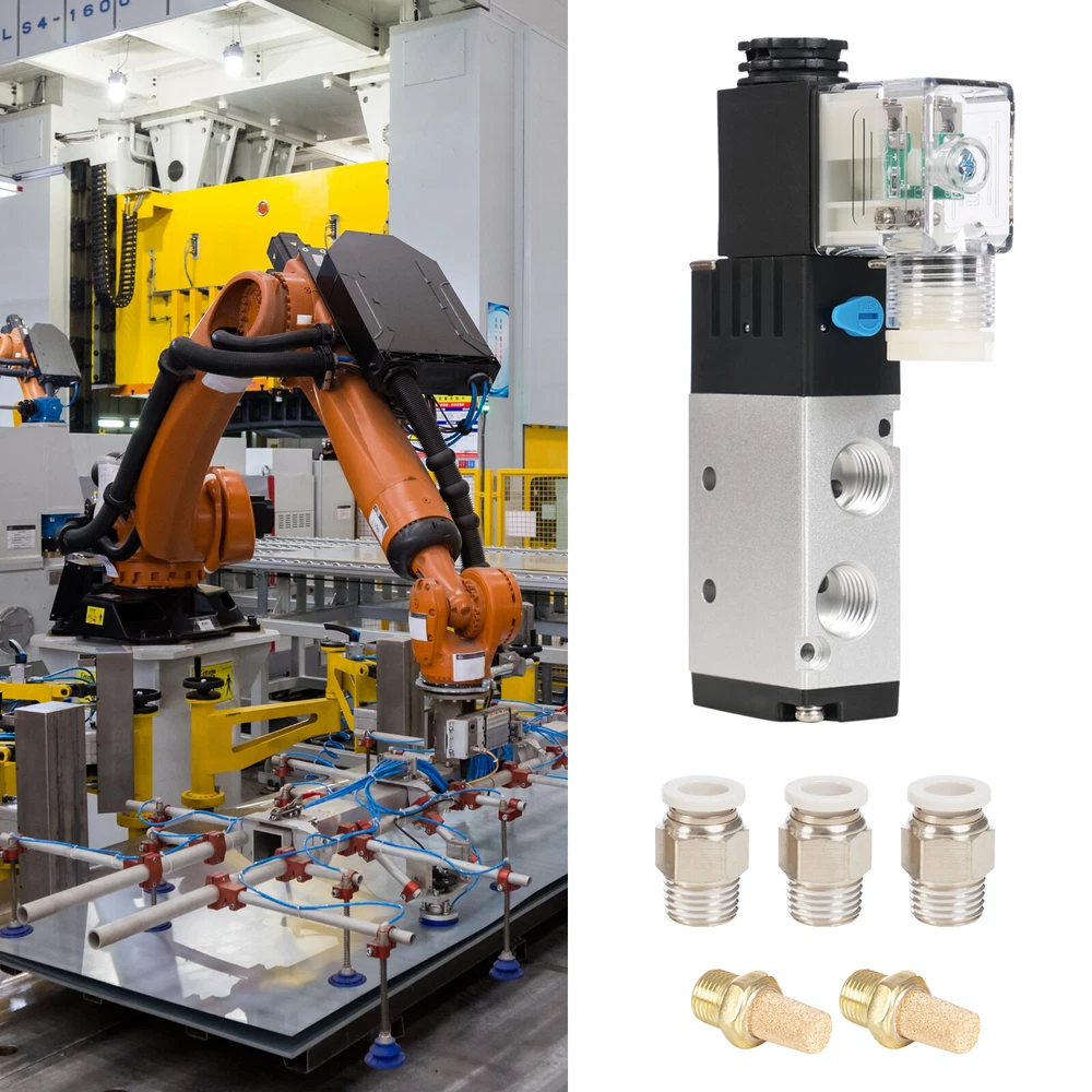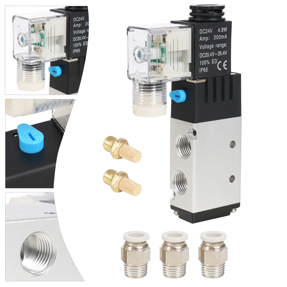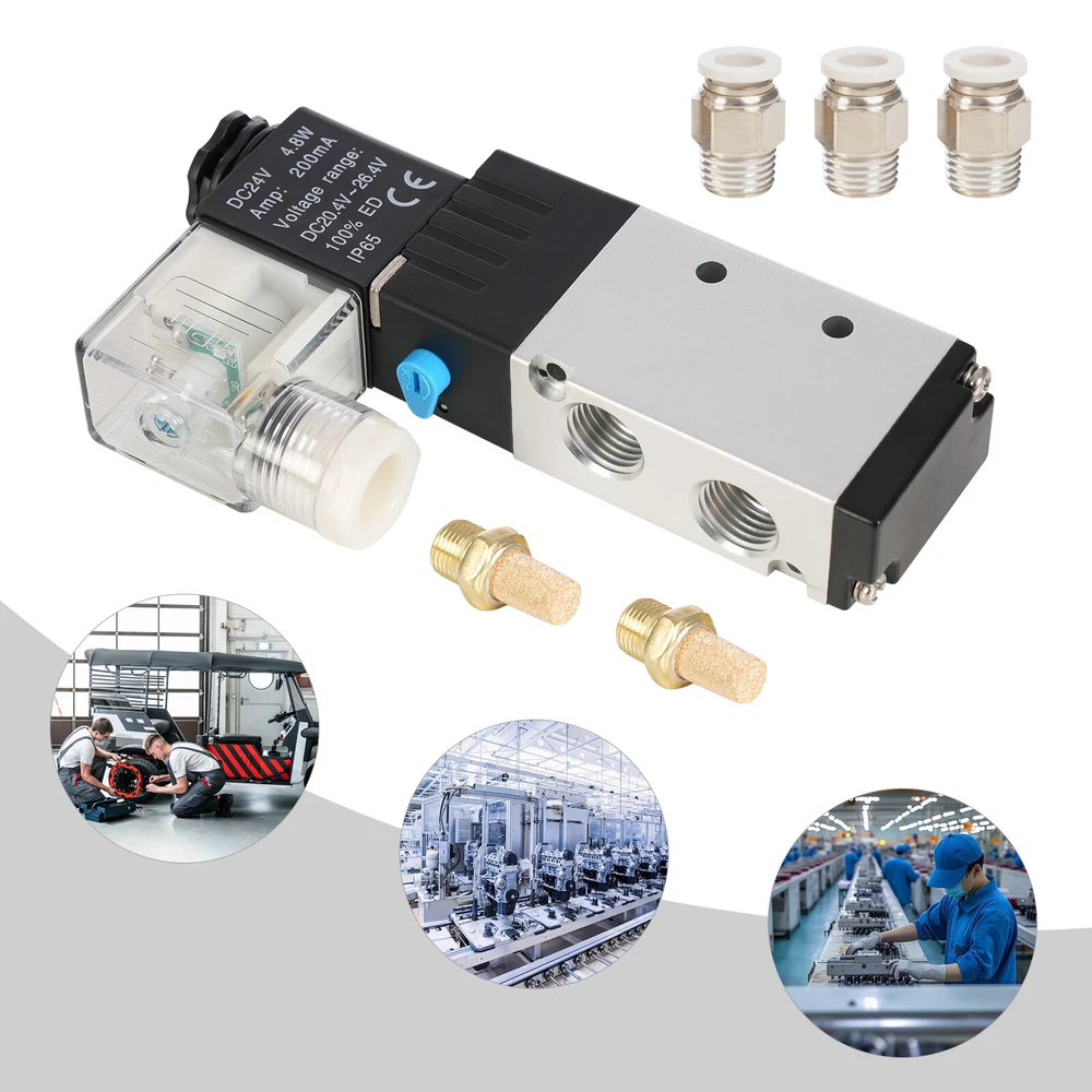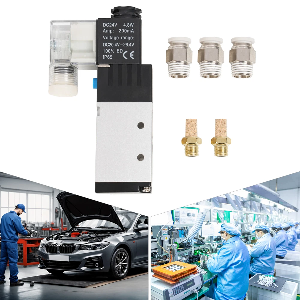 Solenoid Valve, Solenoid Valve with Air Tube 8MM, Solenoid Valve DC24V Description Our solenoid valve with pilot-operated motorized 2-position 5-way design is a highly efficient fluid control element designed for automated control mechanism . It combines advanced solenoid drive technology with precision pilot-operated construction and is designed to provide fast, precise fluid-switching solutions for your industrial applications, whether gases or liquid media, for stable and reliable control. Key Features Made to Last: This product is made of high-quality aluminum alloy, sturdy and wear-resistant , not easy to corrode, rust, and deform, ensuring a long service life. Fast Response: It adopts single-coil electromagnetic drive technology with fast response speed, which can complete the switching action in a short time and is suitable for automated processes requiring high-frequency switching. Pilot-operated Structure: Due to its pilot-operated structure design, the pilot valve is driven by electromagnetism, and the opening and closing of the main valve are controlled by a pneumatic or hydraulic differential. This structure greatly improves the switching speed and reliability of the valve, while reducing energy consumption. 2-position & 5-way Design: Two working positions and five ports allow it to support complex fluid path control for a wide range of automation mechanism . High Efficiency: The 4.8W of power and 21-114PSI of operating pressure make it quick to respond and greatly increase its efficiency. High Safety: The equipped standard seals ensure good sealing performance under high differential pressure and high temperature conditions , preventing leakage and increasing the safety and stability of the mechanism . IP65 protection rating also increases the safety of its application. Easy Assembly: Simple structure and complete accessories help you finish the installation quickly and use it in a short time. Effortless Cleaning: It has a smooth surface and an open structure, so you only need to wipe the dust or residue with a towel. Good Customer Service: We aim to provide quality products and services. If you have problems, please feel free to contact us. We will reply and solve the problem for you as soon as possible. Details Standard Interface: The standard PT thread interface makes it easier and faster to install. Silencer: It can effectively reduce the noise generated when the solenoid valve is working, thus improving the working environment and enhancing the working comfort of the employees. Application This product is widely used in vehicle transportation, air conditioning and refrigeration, chemical production, water and electricity, medical treatment, and many other fields. Specification Material: Aluminum Alloy Color: Silver, Black Assembly Required: Yes Number of Ports: 5 Voltage: DC 24V Power: 4.8W Voltage Range: DC 20.4V~26.4V Protection Class: IP 65 Air Port Size: PT 1/4" Slicer: PT 1/8 Working Pressure: 21~114 PSI(0.15-0.8Mpa) Max. Action Frequency: 5 Times/S Working Temperature: -20~70℃/-4~158℉ Air Tube: 8mm/ 0.31 in Product Size: 11.1*6.3*2.2cm/4.37*2.48*0.87in Package Size: 15*7*4cm/5.91*2.76*1.57in Gross Weight: 0.7kg/1.54lbs Net Weight: 0.5kg/1.1lbs Package Included 1* Solenoid Valve 2* Silencers Other Accessories for Assembly Notes Please allow the slight color difference caused by the shooting light and 1-3cm error due to manual measurement, and make sure you do not mind before ordering. Payment Delivery details Terms of sales About us Contact us Payment We accept ebay payment 。 Fees such as import duties, taxes are not included in the item price or shipping costs. These charges are the buyer's responsibility. Delivery details Shipping: 2-9 working days to: USA Terms of sales We maintain high standards of excellence and strive for hundred percent customer satisfaction. Feedback is very important to us. We hope that you contact us immediately before you give neutral or negative feedback, so that we can address your concerns. It is impossible to address issues if we do not know about them! About us Your satis faction is our ultimate goal. We work hard to earn your trust and future business. Our certified technicians have tested each item before shipping. The unit comes with 1 year limited warranty on all manufacturing defects. a) If you receive a defective item, you may return it or ask for a discount. Please contact us within 14 days after you receive the package. b) What you returned must be intact and in its original packaging as re? u. Customer is responsible for shipping costs of the returned item. c) We will cover the cost of shipping back t with the shipping rate indicated in the registration page. We will send you a new unit or refund the full payment you paid. Thank you. Contact us Business Hour Business Hour: Monday To Friday: 8:30 AM to 5:00 PM (Beijing China time) Due to time zones, our reply to your questions may not be immediately. But within above working time, we will reply your email within 24 hours. If it's non-workdays, please kindly be patient and wait till Monday. Please contact us with ebay message. Please feel free to contact us if you have any questions. Monday To Friday: 8:30 AM to 5:00 PM (Beijing China time) Due to time zones, our reply to your questions may not be immediately. But within above working time, we will reply your email within 24 hours. If it's non-workdays, please kindly be patient and wait till Monday. Please contact us with ebay message. Please feel free to contact us if you have any questions. Brand Unbranded MPN n/a Material: Aluminum Alloy Color: Silver, Black Assembly Required: Yes Number of Ports: 5 Voltage: DC 24V Power: 4.8W Voltage Range: DC 20.4V~26.4V Protection Class: IP 65 Air Port Size: PT 1/4" Slicer: PT 1/8 Working Pressure: 21~114 PSI(0.15-0.8Mpa) Max. Action Frequency: 5 Times/S Working Temperature: -20~70℃/-4~158℉ Air Tube: 8mm/0.31in Product Size: 11.1*6.3*2.2cm/4.37*2.48*0.87in Package Size: 15*7*4