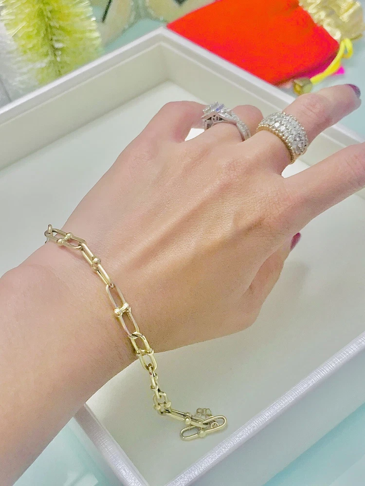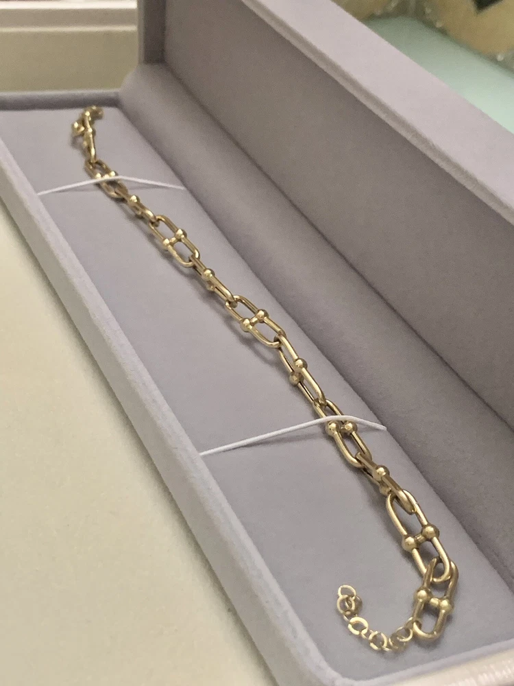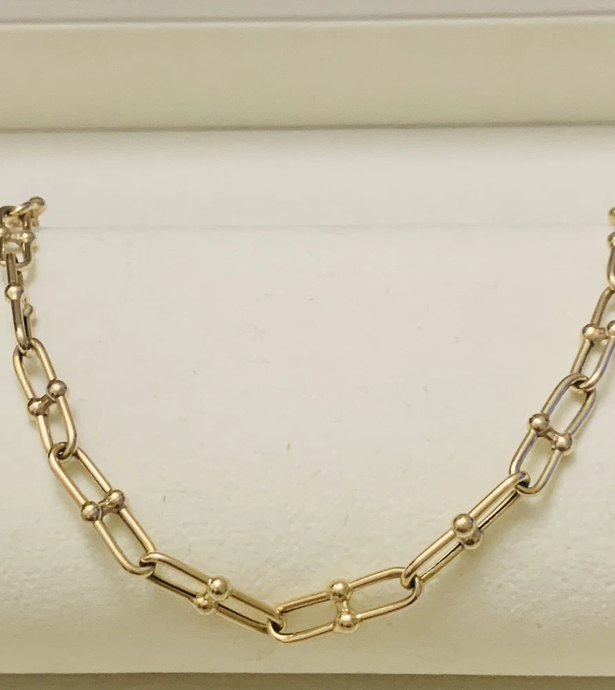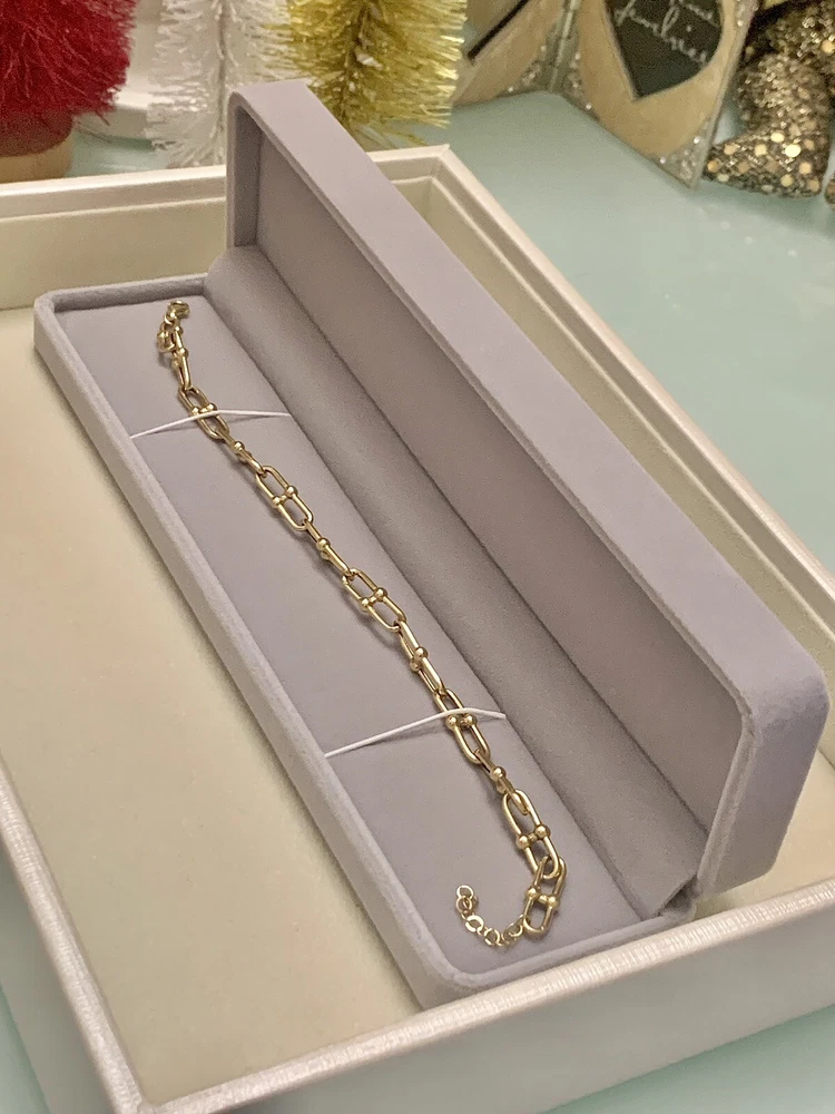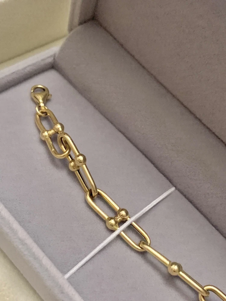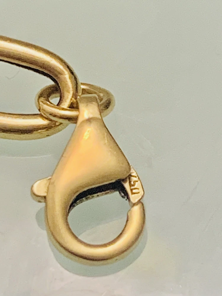 Trending 18K Solid Gold Oval Link Bracelet/Anklet – Adjustable, Unisex, Elegant! Looking to add a touch of luxury to your jewelry collection? This stunning solid 18k yellow gold bracelet or anklet is just what you need to make a statement! 🌟 Features: • Made from solid 18k yellow gold, hallmarked 750 for authenticity and quality • Oval link chain design for a modern, bohemian vibe that’s perfect for any style • Weight: approximately 5.62g of pure elegance • Adjustable length 9-10 inches, making it versatile as a bracelet or anklet for men or women! • Width: 6.8mm – substantial enough to catch eyes without being too bold • Lobster clasp closure for secure wear and easy adjustments Perfect for any occasion: Mother’s Day, Christmas, Graduation, Weddings, Anniversaries, Birthdays, Valentine’s Day, or even Father’s Day – this piece is as versatile as it is stylish! Shipped with elegant gift box available! Why you’ll love it: This bracelet’s minimalist yet elegant design effortlessly transitions from casual to formal, elevating any outfit. Whether you’re rocking it solo or layering it with other pieces, this versatile accessory shines with its boho-chic charm. Unisex Style – Whether you’re treating yourself or someone special, this bracelet’s timeless look works beautifully for both men and women. Made in Saudi Arabia – renowned for impeccable craftsmanship and stunning jewelry design. Don’t miss out on this trending piece – it’s the perfect way to stay fashionable and luxurious. Bid now to make it yours before it’s gone! Thank you for looking! We appreciate you taking the time to view our listing. If you decide to make a purchase, we kindly ask that you leave positive feedback. Your satisfaction is our priority, and your feedback helps us continue to provide excellent service. If you have any questions or concerns, please feel free to reach out. We’re here to help! Thank you for your support!