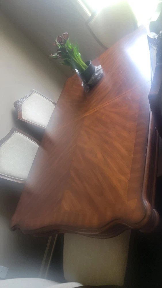 This dining set is a fantastic blend of elegance and durability! The solid oak construction feels sturdy and high-quality, while the pedestal base adds a sleek, modern touch. The spacious table comfortably seats six, making it ideal for family meals or entertaining guests. The chairs are just as well-crafted, with a timeless design that complements any decor. Love how it balances classic charm with practical functionality—definitely worth the investment!