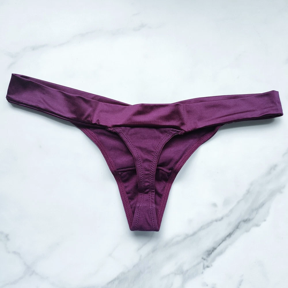 All photos taken by Goob's Closet & Boutique and may not be reused without permission. Imagine a thong-style panty that's all about embracing your curves while keeping things sleek with minimal back coverage and a low rise. But here's the kicker—it has this luxurious stretch satin waistband that feels like pure bliss against your skin. Plus, the front crossover waistband adds a flirty touch. The fabric is a blend of cotton, modal, and spandex that's so soft, it's like wearing clouds. And the cotton gusset? Keeps things breezy and comfy where it matters most. The best part? You can just toss it in the washing machine on a warm cycle for easy care. No fuss! Details Thong Style Minimal Back Coverage Low Rise Luxurious Stretch Satin Waistband Crossover Waistband at Front Ultra Soft Cotton Blend Body Style No. 570315638 Color: Wicked Plum Material Body: 46% Cotton, 47% Modal, 7% Spandex Gusset: 100 % Cotton Care Machine wash warm Measurements Soma Size S (Small) will fit US Size 4-6, Waist 28-29 inches, Hips 37.5-38.5 inches best. Soma Size M (Medium) will fit US Size 8-10, Waist 30-31 inches, Hips 39.5-40.5 inches best. Soma Size L (Large) will fit US Size 12-14, Waist 32.5-34 inches, Hips 42-43.5 inches best. Soma Size XL (Extra Large) will fit US Size 16-18, Waist 35.5-37 inches, Hips 45-46.5 inches best.