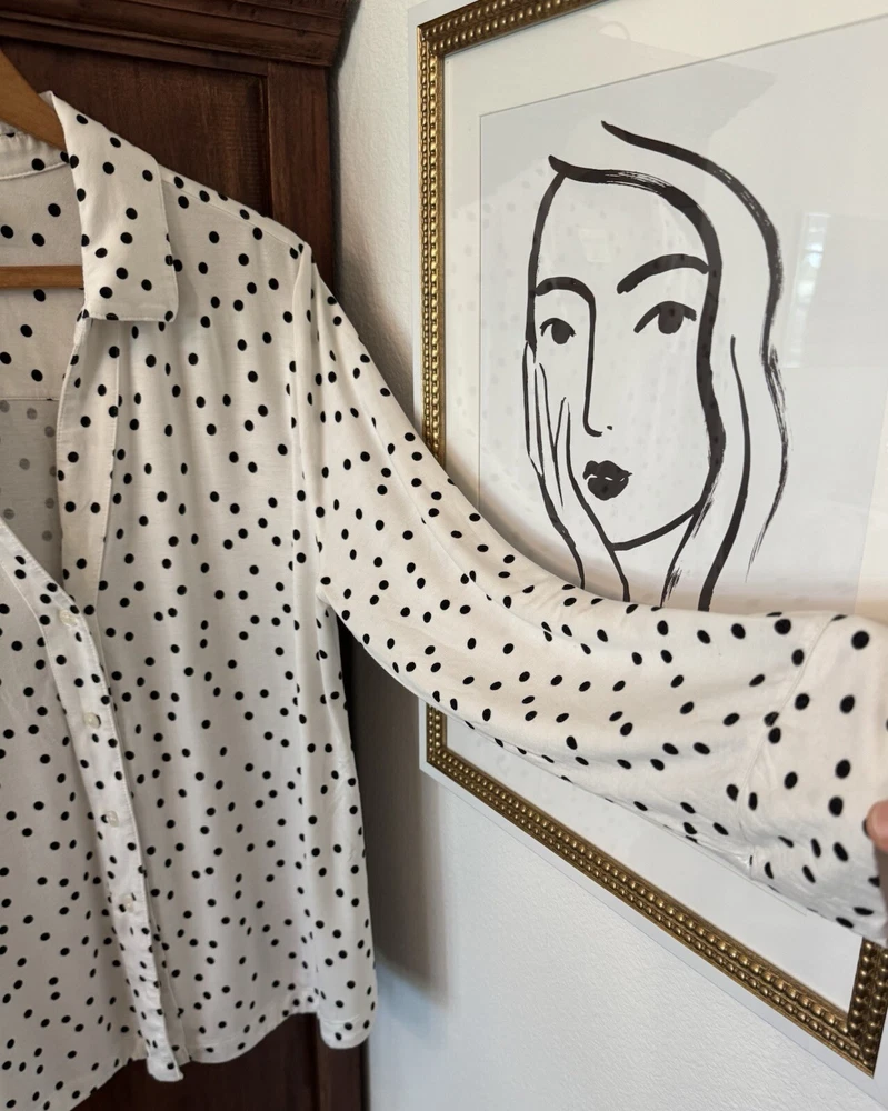 Absolutely love this pajama set! The soft, stretchy fabric feels amazing against the skin, and the polka dot design is playful yet chic. The long-sleeve top buttons up neatly, while the shorts are comfy with a relaxed fit—perfect for lounging or sleeping. The two-size option ensures a great fit for different proportions. Super cozy and stylish!