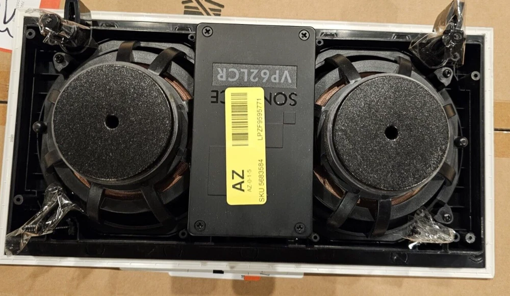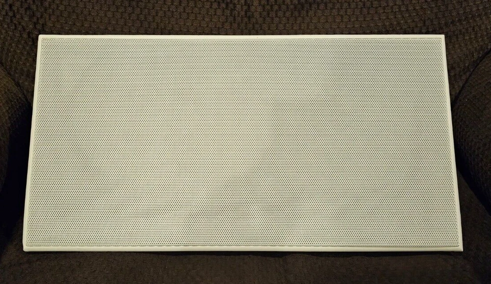 Damaged mounting points. See pics Two 6-1/2" DuPont™ KEVLAR® fiber / nomex woofers Along with 1" aluminum tweeters for a complete range of sounds. 2-way speaker system Sounds like 1 source rather than several separate sources. Paintable grille Allows you to match your décor. Removable grille Remains acoustically transparent while protecting the speaker's components. Wall-mountable design For flexible placement options. 6-7/8" H x 14-1/2" W mounting cutout dimensions Mounting depth: 3-9/16". 43Hz - 20kHz frequency response Ensures a wide range of accurately reproduced sound. 91dB sensitivity Ensures crisp, robust audio. 6 ohms nominal impedance Ensures efficient conduction of power through the speaker.