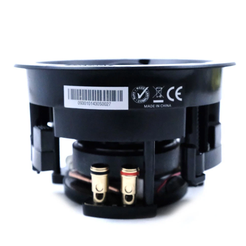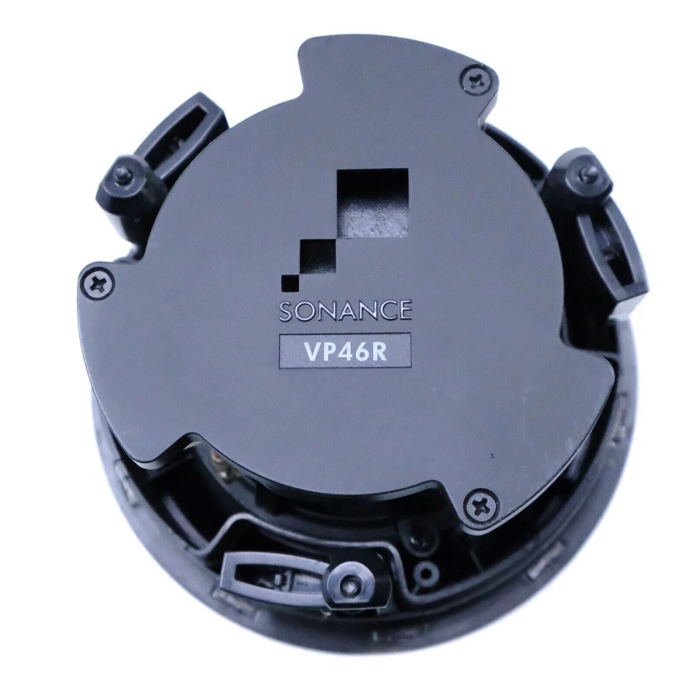 Condition: Has some signs of cosmetic wear. The woofer is dented. The rest of the item is fine and functions properly. No grille. Speaker ONLY. Description: Sonance Visual Performance 4-1/2" 2-Way In-Ceiling Speaker - VP46R (Single) What�s included: Sonance VP46R (ONLY) Only the items shown in pictures will be included. What�s not included: Documentation, Cables,�White paintable grille Original box and packaging: No Savor the sound of your favorite music with these Sonance Visual Performance speakers. They deliver rich sound, and they are inconspicuous when covered with the matching 7-inch square grilles. No matter where you put these small round Sonance Visual Performance speakers, their pivoting tweeters direct the sound wherever you want it. 4-1/2" DuPont� KEVLAR� fiber / nomex woofers Along with 1" aluminum tweeters for a complete range of sounds. 2-way speaker system Sounds like 1 source rather than several separate sources. In-ceiling mounting Creates outstanding sound quality in rooms where space is at a premium. 5-7/8" H x 5-7/8" W mounting cutout dimensions Mounting depth: 3-3/4". 58Hz - 20kHz frequency response Ensures a wide range of accurately reproduced sound. 90dB sensitivity Ensures crisp, robust audio. 8 ohms nominal impedance Ensures efficient conduction of power through the speaker. DuPont� and KEVLAR� are registered trademarks of DuPont used under license by Motorola Mobility LLC and its subsidiaries. Key Specs Speaker Type In-Ceiling Wireless No General Product Name VP46R - Visual Performance 4-1/2" 2-Way In-Ceiling Speakers (Single) Brand Sonance Model Number 93010 Series Visual Performance Color Category Black Audio Speaker Type In-Ceiling Peak Power Handling 80 watts Impedance 8 ohms Minimum Frequency Response 58 hertz Maximum Frequency Response 20 kilohertz Sensitivity 90 decibels Number Of Speakers 1 Number Of Tweeters Included 1 Tweeter Size 1 inches Number Of Woofers Included 1 Woofer Size 4.5 inches Connectivity Wireless No Wireless Multi-Room Audio No Feature Indoor Or Outdoor Use Indoor Dimension Product Height 6.88 inches Product Width 6.88 inches Product Depth 3.75 inches Product Weight 3 pounds Cutout Diameter 5.88 inches Material Tweeter Material Aluminum Woofer Material Kevlar, Nomex Included Cable(s) Included None