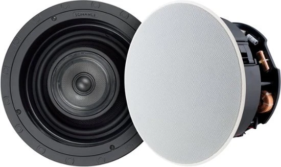Includes one speaker, this is not for a pair, the grill is included. None of the posts that connect the bottom of the speaker to the top is connected, they are all cracked. the speaker works fine but the damage will make it impossible to mount unless its fixed. 8" polypropylene woofers Along with 1" cloth tweeters for a complete range of sounds. 3-way speaker system Sounds like 1 source rather than several separate sources. Paintable grille Allows you to match your décor. Removable grille Remains acoustically transparent while protecting the speaker's components. In-ceiling mounting Creates outstanding sound quality in rooms where space is at a premium. 10-1/8" H x 10-1/8" W mounting cutout dimensions Mounting depth: 6-1/16". 38Hz - 20kHz frequency response Ensures a wide range of accurately reproduced sound. 90dB sensitivity Ensures crisp, robust audio. 8 ohms nominal impedance Ensures efficient conduction of power through the speaker.
