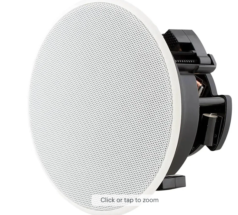 Tweeter 1" (25mm) ceramic dome, Ferrofluid-cooled, pivoting, in acoustic back chamber Woofer 4 1/2" (114mm) carbon fiber/Rohacell laminated cone with a rubber surround Frequency Response 50Hz - 20kHz ±3dB Impedance 6 ohms nominal; 4 ohms minimum Power Handling 5 watts minimum; 100 watts maximum Sensitivity 90dB SPL (2.83V/1 meter) Dimensions (Diameter) 6 7/8" Cut-Out Dimensions (Diameter) 5 7/8" Dimensions w/ Square Grille 7"x7" Speaker Depth 3 3/4" Grille Material Perforated Steel