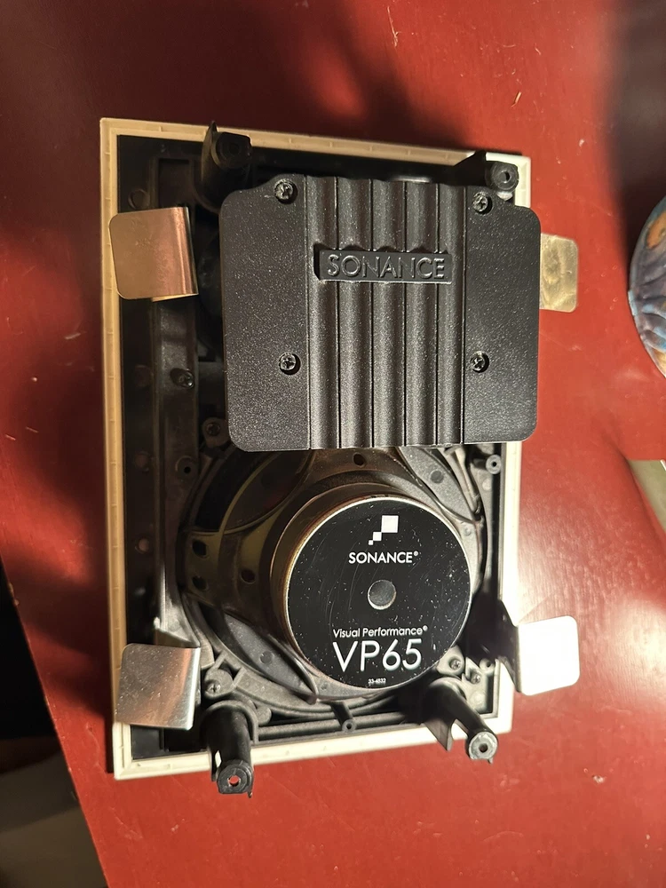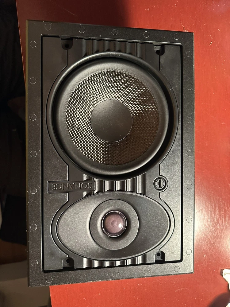 Pair of Sonance Visual Performance Series speakers (like new). These speakers combine elegant, modern style with outstanding audio performance. New micro-trim grilles have only 0.20” (5mm) of trim, giving these speakers a clean, sleek appearance that seamlessly integrates into any designed space. The grilles attach via powerful magnets, for simple, quick installation. A one-step paint process saves time compared to traditional flanged speakers. Features: Micro trim steel grille has only 0.20” of ABS trim for a sleek, modern appearance. Powerful neodymium magnet grille attachment eases installation. Pivoting drivers direct sound at listeners for improved stereo performance, even from less-than-ideal mounting locations. All Medium Visual Performance Series speakers can be retrofitted into existing cutouts for Sonance Original Series Medium speakers without modification. Grilles and frames can be painted together, saving installation time. Visual Performance Sonance ThinLine™ (TL) feature shallow 2 1/2” and 3 1/32” (64mm and 77mm) depths that allow installation in areas that will not accommodate conventional speakers.
