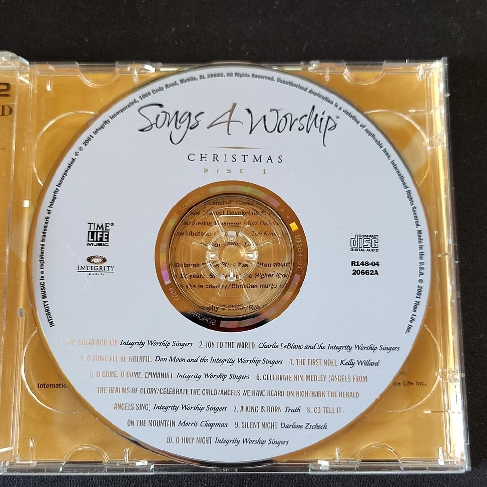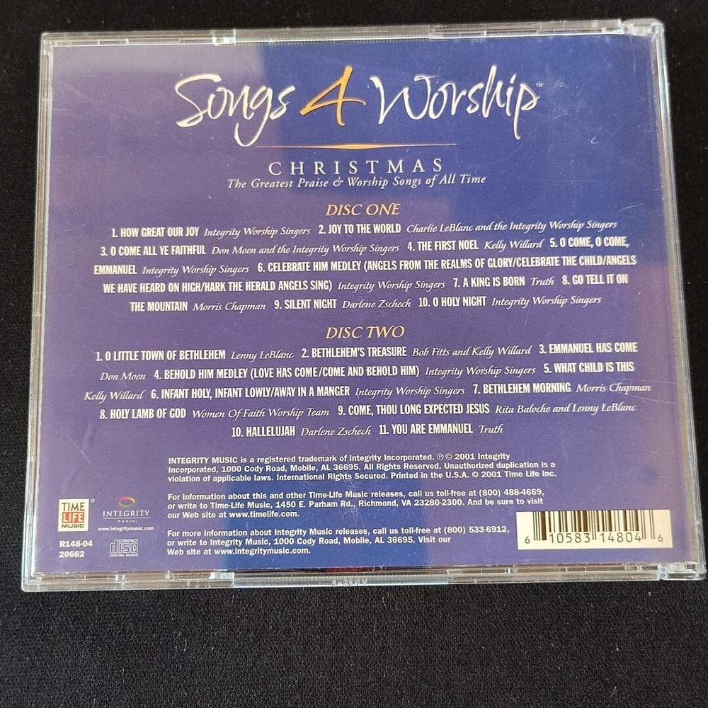 Get into the Christmas spirit with this wonderful collection of Songs 4 Worship: Christmas. This CD features a variety of artists and is perfect for anyone who loves Christian music. With a run time of 74 minutes, you'll have plenty of time to enjoy all of the songs on this 2 disc set. The record label, TIME/LIFE Music, released this CD in 2001 and it's a great addition to any music collection. This CD is perfect for Christmas and is sure to bring joy to anyone who listens to it. Don't miss out on this wonderful opportunity to own a piece of Christmas music history.