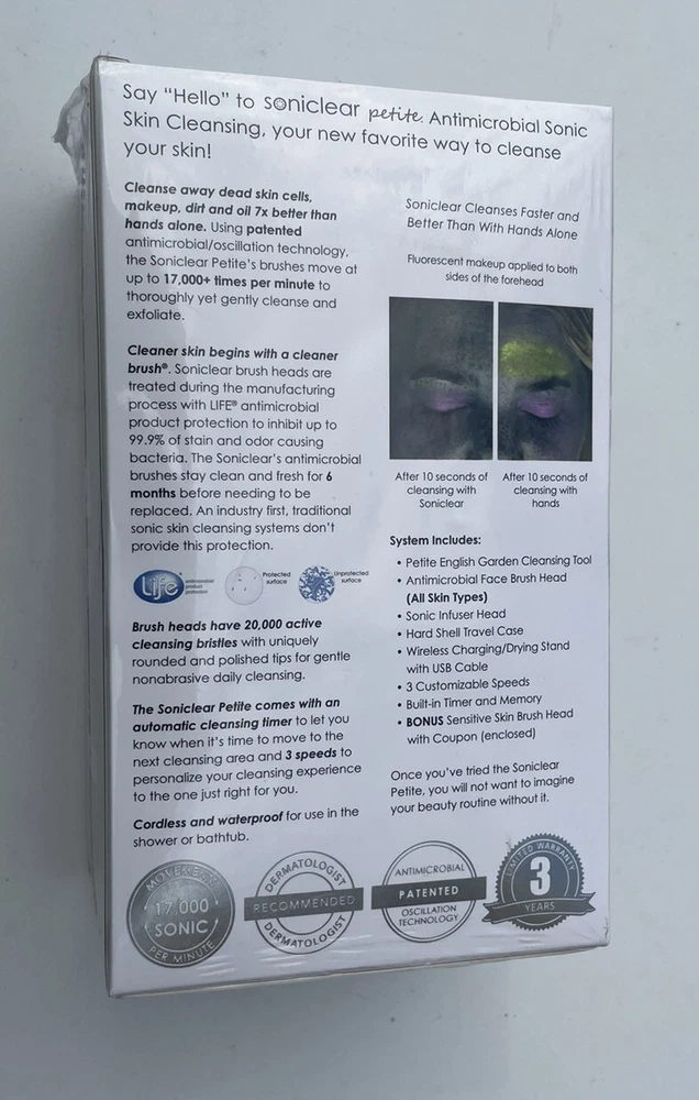 Soniclear Petite Michael Todd Beauty Brush Antimicrobial Skin Cleansing System. This item is in brand new sealed condition. The packaging is very clean and smoke-free. Please check the pictures carefully in order to better assess the condition of the packaging. I am willing to bundle deal with multiple purchases. I will provide fast and careful shipping. I will respond to all inquiries. Thank you for your time. Q