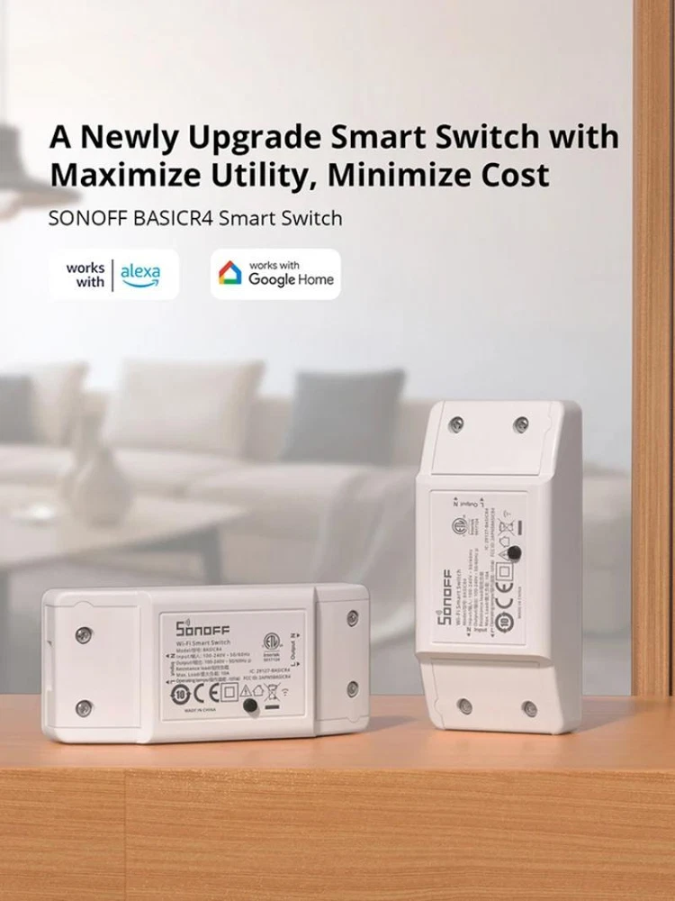 Sonoff Basicr4 Smart Wifi DIY Switch Smart Home Remote Control Switch Module Magic Switch Mode Via Ewelink APP Works with Alexa SONOFF BASICR4 WiFi Switch DIY Universal Breaker Relay Moudle Timer Smart Home Magic Switch Mode eWeLink Control remoto inalámbrico BASICR4 es un interruptor inteligente WiFi recientemente actualizado equipado con un chip ESP32. BASICR4 no solo mejora las características básicas, sino que también eleva el rendimiento, a la vez que mantiene un precio asequible. En Comparación con BASICR2, BASICR4 tiene tres nuevas funciones, modo de interruptor mágico, protección auxiliar contra sobrecalentamiento y control remoto "eWeLink-Remote". BASICR4 tiene un modo de "interruptor mágico", lo que significa que aún puede controlar el interruptor de luz a través de la aplicación incluso apagando un interruptor de pared tradicional (Nota: * Solo compatible con las principales marcas de interruptores basculantes de doble Polo. La luz trasera debe ser compatible con las principales marcas de LED, lámparas de ahorro de energía y lámparas incandescentes de 3W a 100W). BASICR4 es un interruptor inteligente con la función de puerta de enlace de "eWeLink-Remote". Usando el botón de conexión 2 o 5 para emparejar con el BASICR4, luego configure la escena, puede alcanzar el control bidireccional y el control local. Con el sensor de temperatura incorporado del producto, se puede detectar y especular la temperatura máxima en tiempo real de todo el producto, lo que evita que el producto se deforme, se derrita, se dispare, o dispositivos en vivo de la exposición en caso de exceso de temperatura. El BASICR4 no solo tiene certificaciones básicas CE, FCC, etc., sino que también ha pasado la certificación ETL más autorizada. BASICR4 tiene todas las funciones más básicas, control remoto de aplicaciones, control de voz, temporizador, estado de encendido y otras funciones. Puede controlar sus electrodomésticos en cualquier momento y en cualquier lugar, y también crear una variedad de escenas inteligentes para facilitar su vida. Iluminación maestra al alcance de tu mano Desbloquea el mundo de los hogares inteligentes comenzando con BASICR4 al precio. No importa el interruptor de pared o el control remoto de la aplicación, puede disfrutar del mundo inteligente. El control está a una mano de distancia. Lo suficientemente conveniente, lo suficientemente receptivo Siéntase libre de experimentar la comodidad. Usando el emparejamiento con BASICR4 y configurando la escena, puede alcanzar el control bidireccional y el control local. Conexión y automatización ¿No puede concentrarse en su lectura porque la temperatura ambiente es demasiado alta? Configure una escena inteligente cuando la temperatura sea superior a 26,5 °C, el ventilador se encenderá automáticamente. ¿Te despiertas a medianoche y quieres ver a tu bebé? No se preocupe por molestar a sus hijos cuando haga clic en el interruptor. Simplemente configure una escena inteligente para que cuando pase, la luz se encienda. Más formas para más posibilidades Explora un viaje a casa inteligente que te pertenece. Características: 【Chip ESP32】Actualiza el chip, mejora la función básica y aumenta el rendimiento manteniendo un precio razonable. 【Modo de interruptor mágico】Puedes controlar el interruptor de luz a través de la aplicación incluso apagando un interruptor de pared tradicional. No importa el interruptor de pared o el control remoto de la aplicación, puede disfrutar del mundo inteligente. 【Control "eWeLink-Remote" 】 BASICR4 es un interruptor inteligente con la función de puerta de enlace de "eWeLink-Remote". Puede agregar sub-dispositivos "eWeLink-Remote", usar el dispositivo BASICR4 o el R5 para emparejarlo con el BASICR4 y luego configurar la escena, puede alcanzar el control bidireccional y el control local. 【Control de grupo】Puede configurar grupos para controlar varios dispositivos al mismo tiempo para mayor comodidad. 【Seguro y confiable】Con el sensor de temperatura incorporado del producto, se puede detectar y especular la temperatura máxima en tiempo real de todo el producto, lo que evita que el producto se deforme, se derrita, se dispare, o dispositivos en vivo de la exposición en caso de exceso de temperatura. BASICR4 ha obtenido certificaciones CE, FCC, ETL, etc.