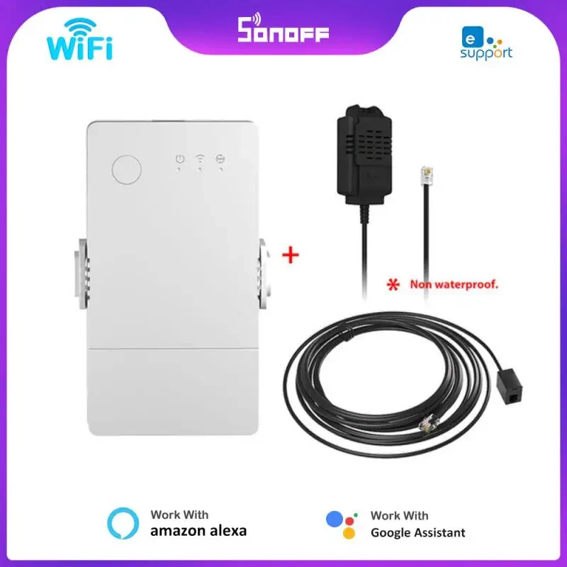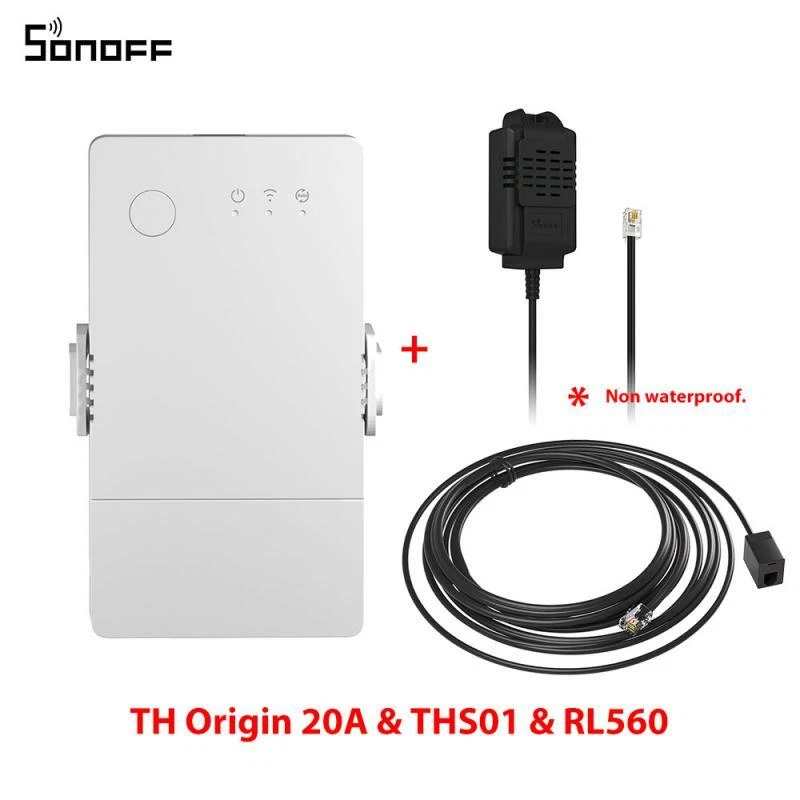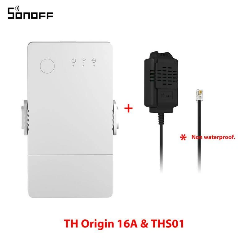 Sonoff Wifi Switch THR316/320 Smart Switch TH16 New Upgrade Voice Control Smart Home With Temperature Humidity Sensor DS18B20 SONOFF TH Origin (the upgrade version of TH10/TH16) is a smart temperature and humidity monitoring switch with ESP32 chip, it keeps monitoring the temperature and humidity in real time, once they reach your preset threshold or the device's on/off state changes, you will receive the push notification on the phone. SONOFF TH Origin supports 20A/16A max loads, compatible with more home appliances. TH Origin support to check 6-Month Temp & Humi historical data accurate to the hour. In the smart scene, temperature, humidity, on, off support setting as the trigger, on, off, invert as execute actions. Support adding SONOFF devices to Home Assistant for control and automation through eWeLink add-on. SONOFF TH Origin supports three kinds of temperature monitor and humidity monitor sensors—THS01 Temp & Humi Sensor, DS18B20 waterproof Temp sensor, and MS01 Soil Moisture Sensor. The sensor connector is upgraded to RJ11, supporting hot-plugging making the connection more stable and reliable. So TH Origin has wide application scenes, like heated swimming pool, irrigation system, fermentation room, reptile terrarium, greenhouse grown, etc. The RL560 sensor extension cable can connect the SONOFF temperature and humidity sensors to extend your device's distance. THS01, DS18B20 can be extended to 60M, and MS01 Soil Moisture Sensor can be extended to 10M. You Safety, Our Responsibility 1. Strictly selects UL safety components and RoHS environmental protection materials to design the products. 2. The high-grade flame-retardant shell material is used. 3. Cut off high voltage generated by a lightning strike or unstable power supply when thundering. Different Sensors for Different Scenes The sensor connector is upgraded to RJ11, supporting hot plugging making the connection more stable and reliable. Reliable Temp & Humi Control TH supports LAN control, Wi-Fi disconnected will not affect the operation of your device. 6-month Temp & Humi History Data Support to review the temp & humi history data by hour, day and month. Past 6-month history data can be exported in .xlsx format and accurate to hour. Timely Notifications TH keeps monitoring the temperature and humidity in real time, once they reach your preset threshold or the device’s on/off state changes, you will receive the Push notification on the phone. Voice Control Note Note 1: THS01 and DS18B20 (RJ11) are the sensors of the RJ11 jack, just plug into TH Origin to use. Note 2: The RL560 is the new sensor extension cable of RJ11, it can connect the SONOFF temperature and humidity sensors to extend your device’s distance. DS18B20, THS01 can be extended to 60M, and MS01 soil moisture sensor can be extended to 10M. THS01 Sensor Sensor Type: Temperature & Humidity sensor Connector type: RJ11 4P4C Temperature Measuring Range: –40℃~ 85°C Humidity Measuring Range: 0~100%RH Cable Length: 50cm DS18B20 Sensor Sensor Type: Waterproof temperature sensor Connector type: RJ11 4P4C WorkigTemperature: -55℃~ 125℃ Length: 50cm RL560 Sensor Extension Cable Conductor resistance: max.10Ω Insulation resistance: min.5MΩ Length: 5m cable length & Max. 60m extendable length. MS01 Sensor Sensor Type: Soil Moisture Sensor Humidity Measuring Range: 0~100%RH Operating Temperature Range: 0℃~60°C Cable Length: 50cm