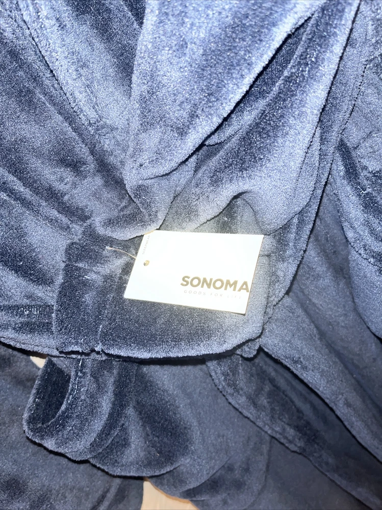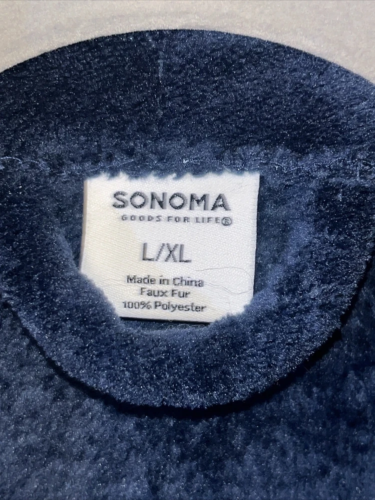 Indulge in luxury and comfort with this Sonoma BathRobe. Made of 100% polyester faux fur, this robe is perfect for lounging and pampering. The mineral navy color adds a touch of elegance to the robe's collared neckline and long sleeves with tie closure. This unisex bathrobe comes in size L/XL and features 2 sets of belt loops and 2 pockets. It is also machine washable for easy care. Ideal for spa days or relaxing evenings at home, this Sonoma BathRobe is the perfect addition to your loungewear collection.