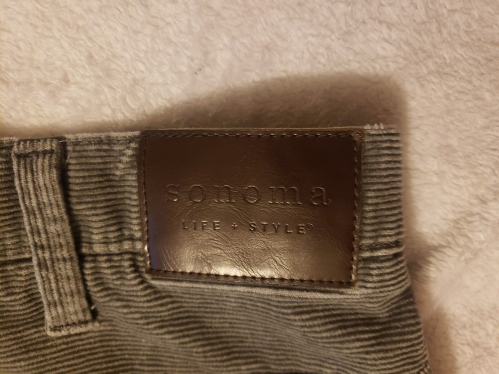 Elevate your wardrobe with these stylish and versatile Sonoma Courduroy Pants. The light gray color and classic fit make them perfect for any occasion, whether it be travel, casual outings or business meetings. The pants feature a zip and button closure, along with a 5-pocket design, providing ample storage space for your essentials. Crafted from high-quality cotton corduroy fabric, these pants are durable and machine washable for easy care. The mid-rise waist and straight leg style provide a comfortable and flattering fit for men. The Sonoma Life+Style model is a must-have addition to any fashion-forward wardrobe. They have been machine washed and line dried. From a smoke free, pet free home. Message me with any questions. Thanks for looking.