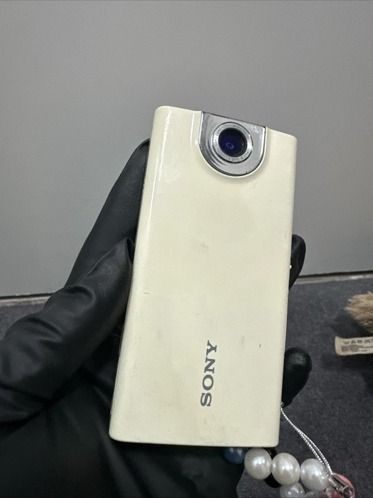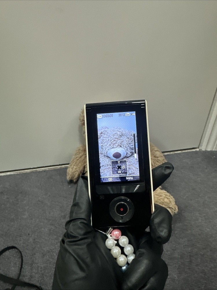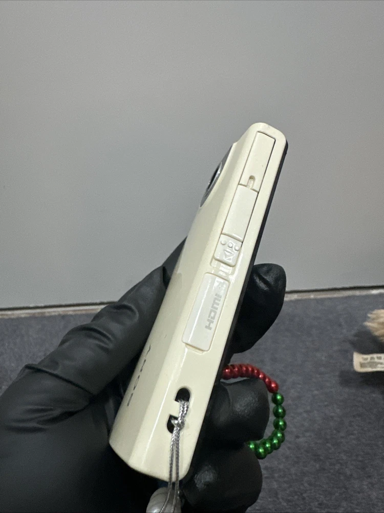 Pre owned The Camera is in good condition with some discolouration at the back casing. The screen has some minor scratches Please study all photos Fully tested and fully functional The camera comes with its box, manual, case and cute bracelet style strap The charger is attached to the side in the form of usb Please note: the box has wear and the case has some wear too Offers welcome
