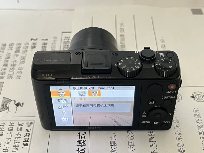 Sony Cyber-Shot DSC-HX50 20.4MP Digital Camera 30x Optical Zoom Black English Product Description: The Sony Cyber-shot DSC-HX50 is a 30x compact superzoom camera that includes both Wi-Fi and GPS. It's built around a 20.4MP 1/2.3" BSI CMOS sensor, sitting behind a 24-720mm F3.5-6.3 lens. It includes 3-axis SuperSteady Shot image stabilization and can shoot at up to 10 frames per second for 10 frames. Its battery is rated at around 400 shots-per-charge and the Wi-Fi can be used for both file transfer and remote control. Body type Compact Max resolution 5184 x 2920 Effective pixels 20 megapixels Sensor size 1/2.3" (6.17 x 4.55 mm) Sensor type BSI-CMOS ISO Auto, 100, 200, 400, 800, 1600, 3200, (6400, 12800 with boost) Focal length (equiv.) 24–720 mm Articulated LCD Fixed Screen size 3″ Screen dots 921,000 Max shutter speed 1/4000 sec Format MPEG-4, AVCHD Storage types SD/SDHC/SDXC/Memory Stick Duo/Memory Stick Pro Duo, Memory Stick Pro-HG Duo USB USB 2.0 (480 Mbit/sec) Weight (inc. batteries) 272 g (0.60 lb / 9.59 oz) Dimensions 108 x 64 x 38 mm (4.25 x 2.52 x 1.5″) GPS NO Package included: -Camera - Battery - Battery Charger - SD memory card On Nov 3, 2025 at 05:30:46 PST, seller added the following information: