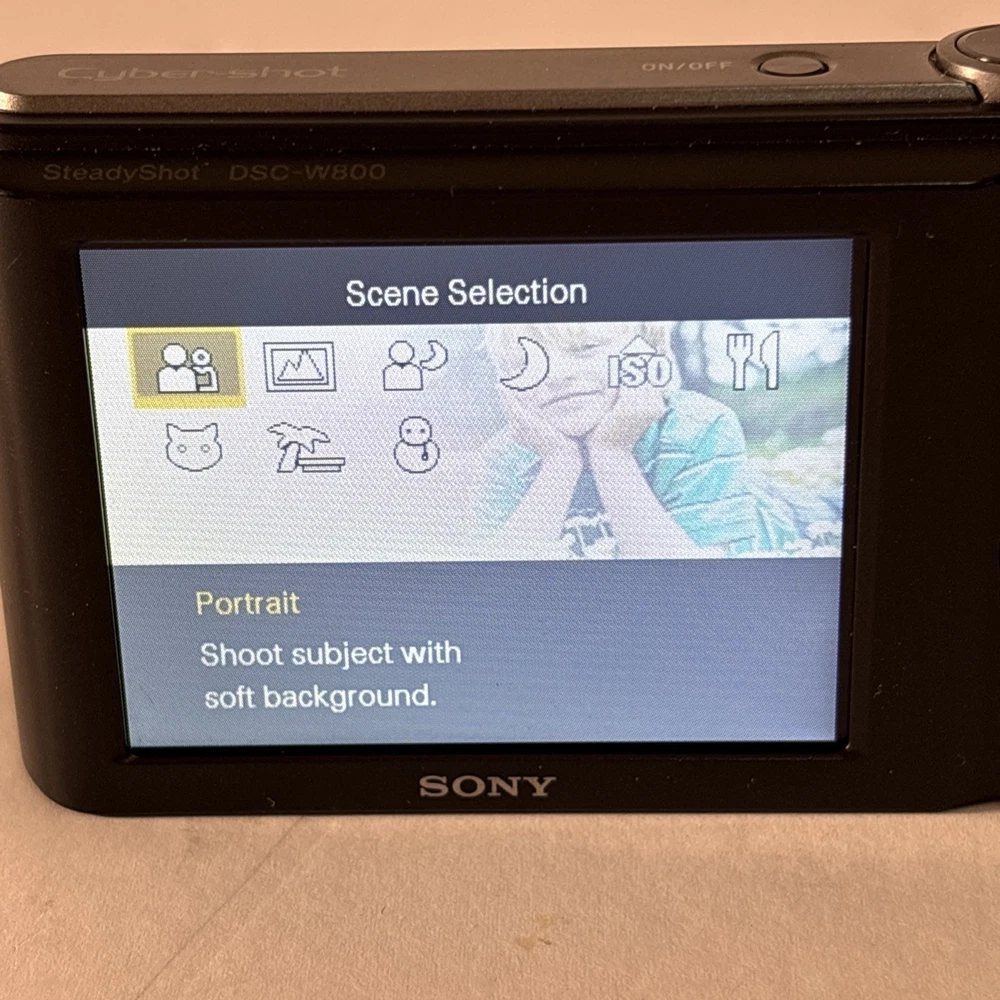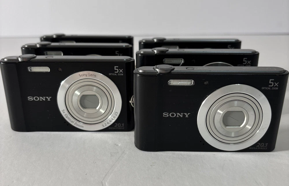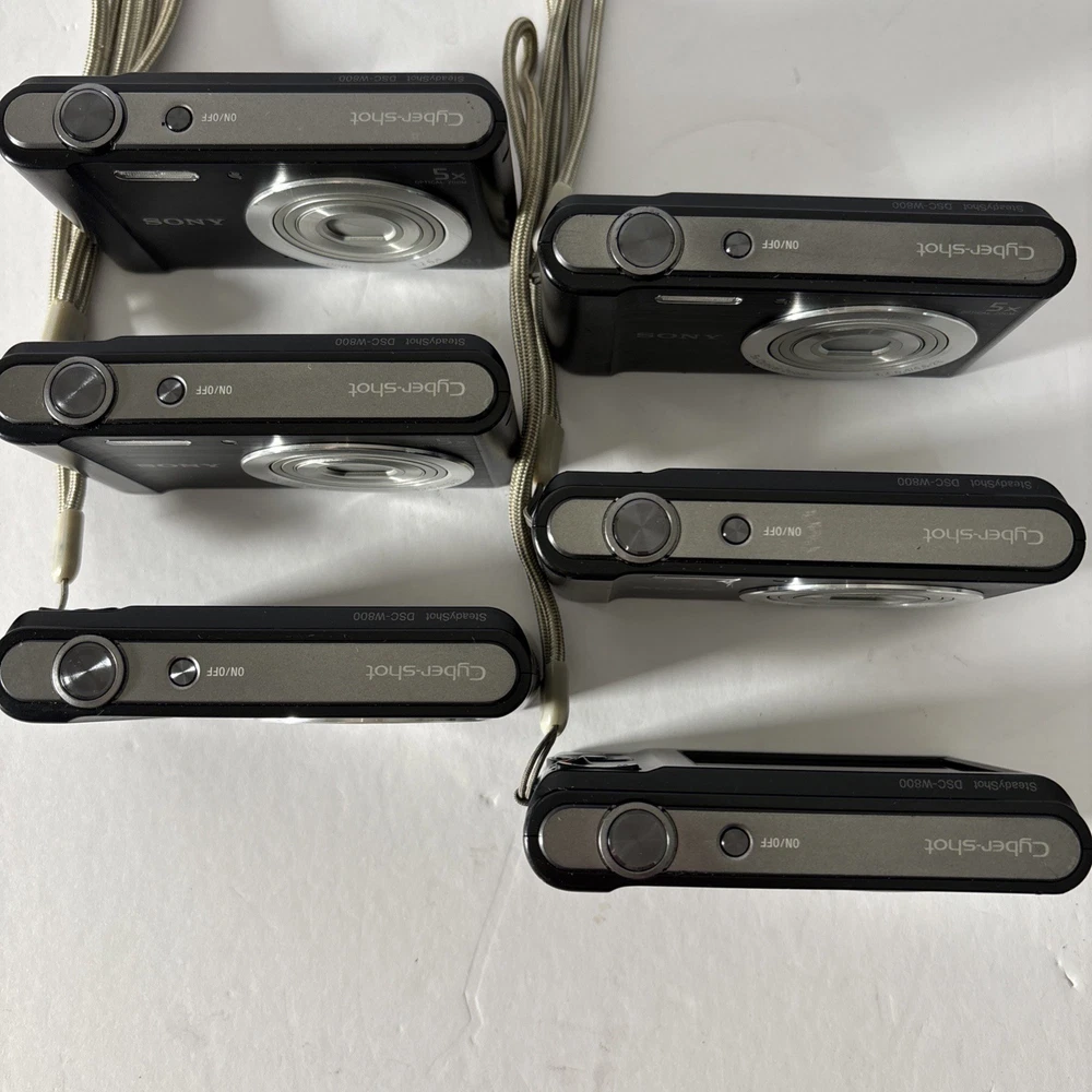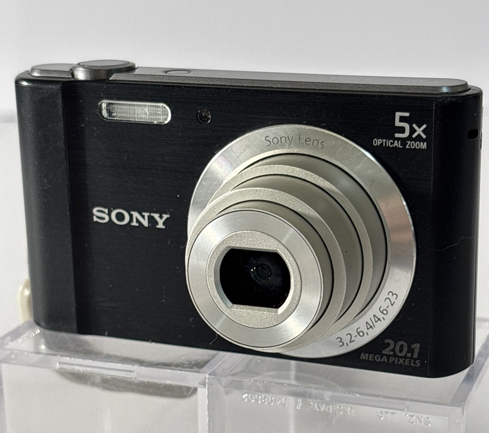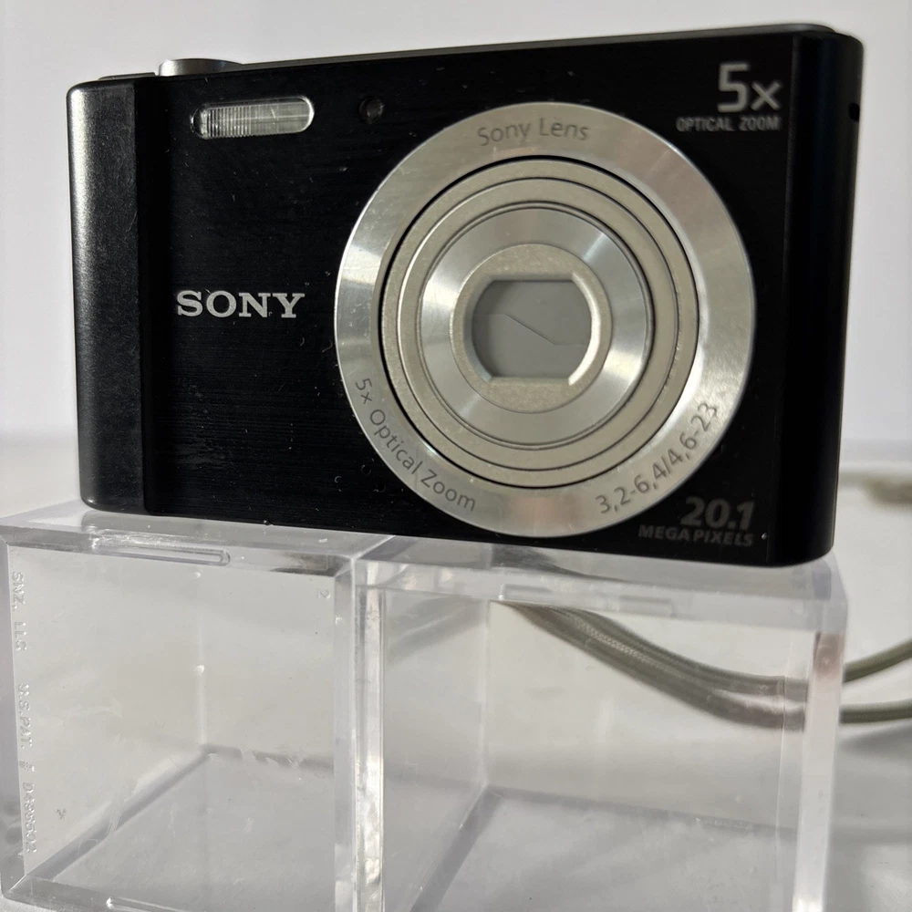 Sony Cyber-Shot DSC-W800 20.1 MP 5x Optical Zoom Digital Camera-Cord, Card, Case These preowned cameras are in very good condition. They show slight wear from age and use, with light scuffs around silver lens ring. The LCD screens are virtually scratch-free. When tested, the cameras work well. Each Bundle Includes: Camera, Battery, USB Charging/Data Cord, 16GB SD Card, Case. 6 Cameras Available. The Sony Cyber-Shot DSC-W800 is a compact digital camera with a sleek black design. It features a 20.1 MP maximum resolution, 5x optical zoom, and 10x digital zoom for capturing high-quality images. The 2.7-inch screen size makes it easy to view and navigate through your photos. With built-in image stabilization, USB connectivity, and a lithium-ion battery, this camera is a convenient and reliable option for photography enthusiasts. Additionally, it comes with a cord, card, and case included, making it a complete package for capturing and storing your memorable moments.