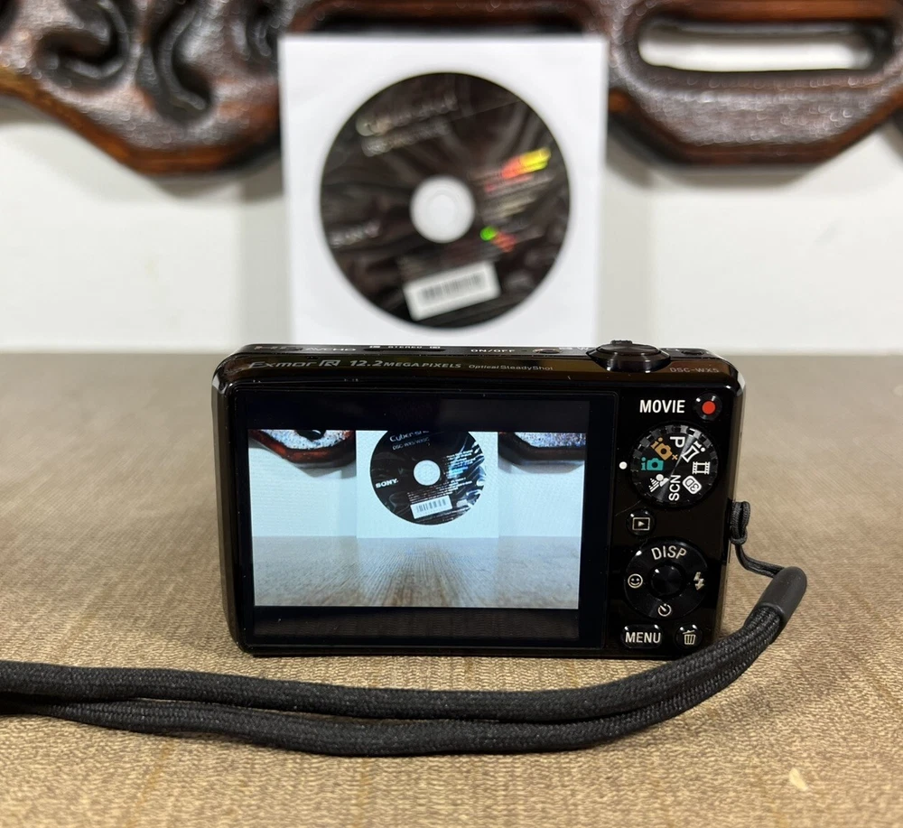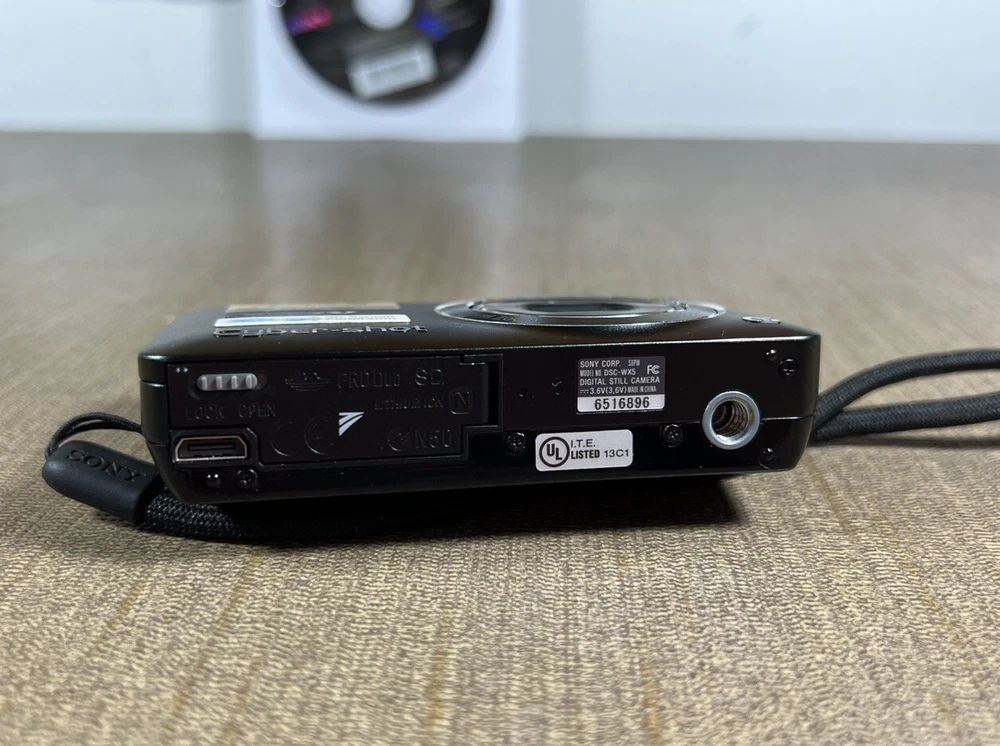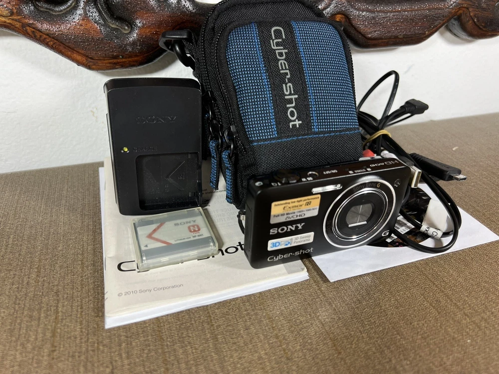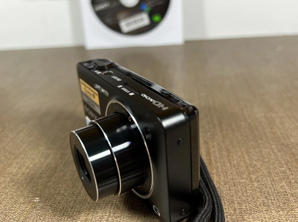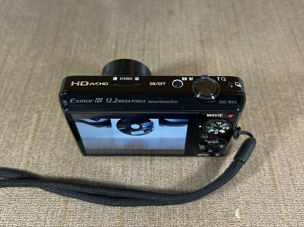 Sony Cyber-Shot DSC-WX5 12.2 Megapixel 5x Optical Zoom Black Digital Camera with carrying case, manual, CD software, charger, two batteries, & AV USB cable. Tested & working. Preowned used condition - some damage to top left corner & splitting on top (doesn’t affect camera) - please use photos for references. Order will be shipped via USPS. Please message any questions or concerns.