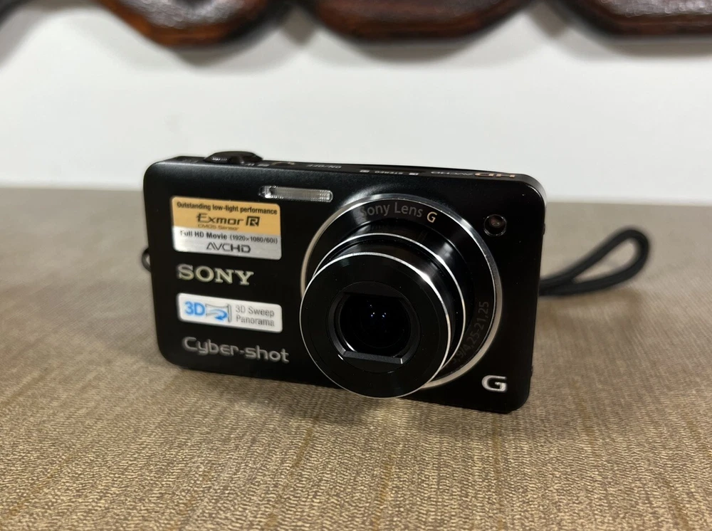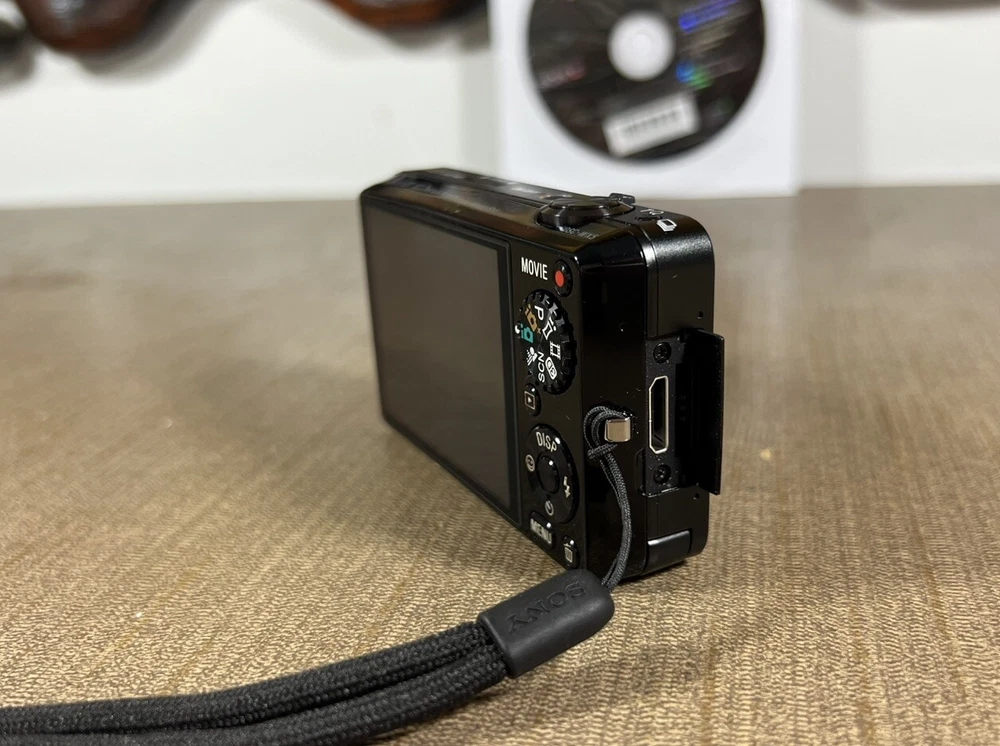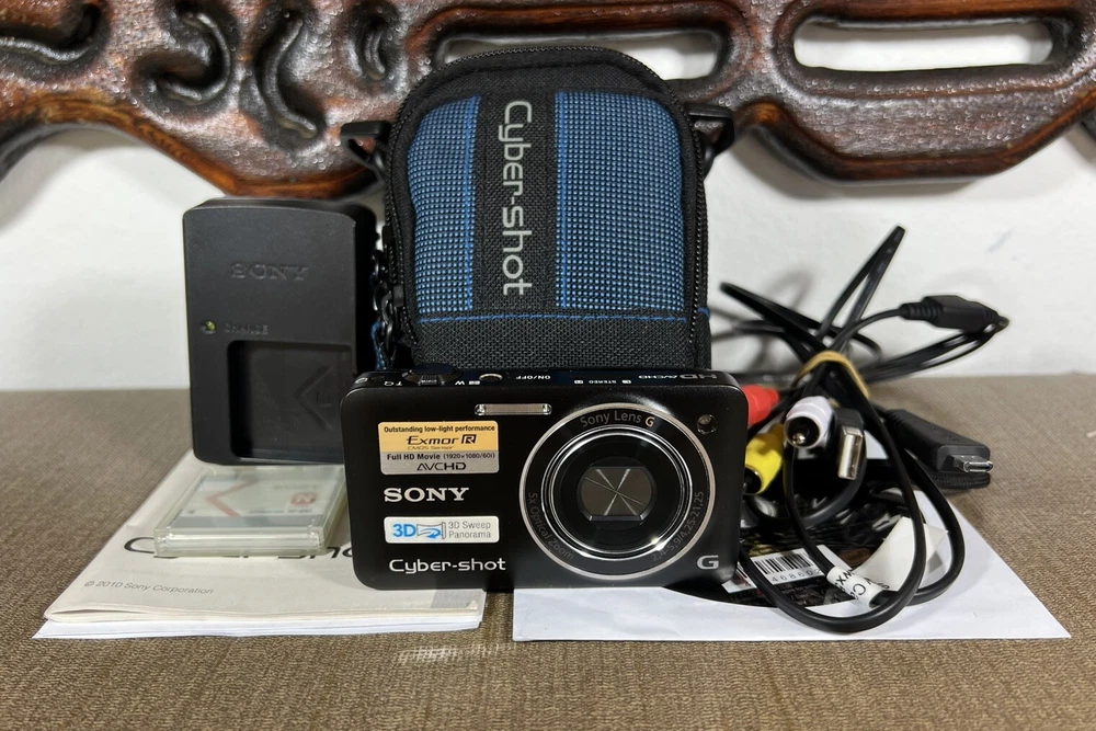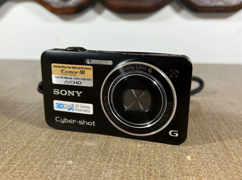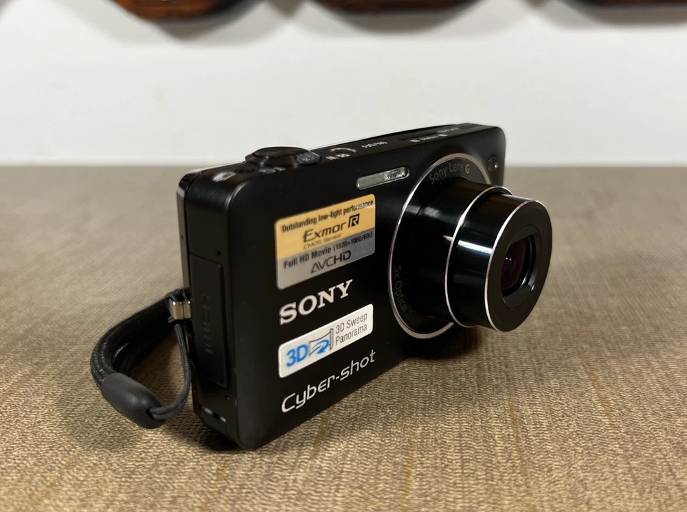 Sony Cyber-Shot DSC-WX5 12.2 Megapixel 5x Optical Zoom Black Digital Camera with carrying case, manual, CD software, charger, two batteries, & AV USB cable. Tested & working. Preowned used condition - some damage to top left corner & splitting on top (doesn’t affect camera) - please use photos for references. Order will be shipped via USPS. Please message any questions or concerns.