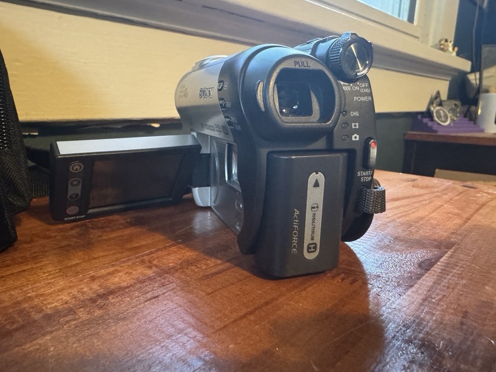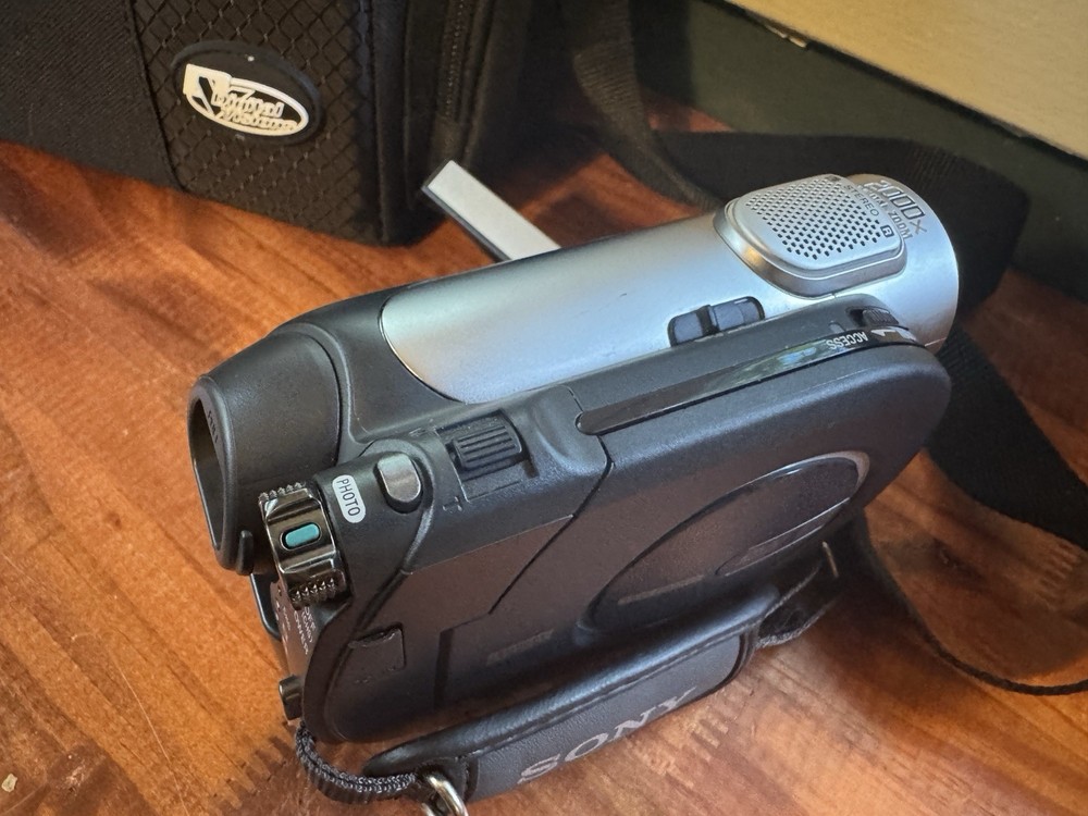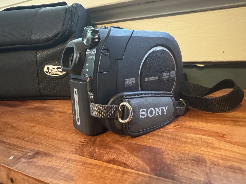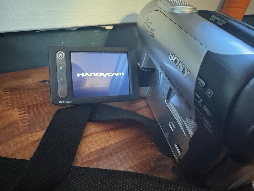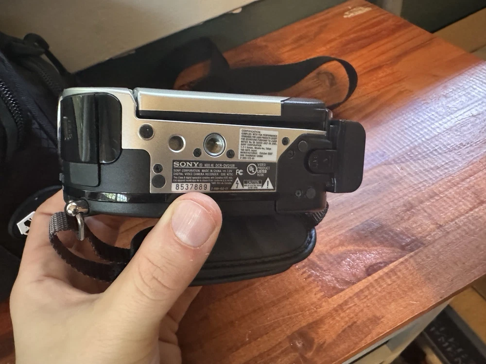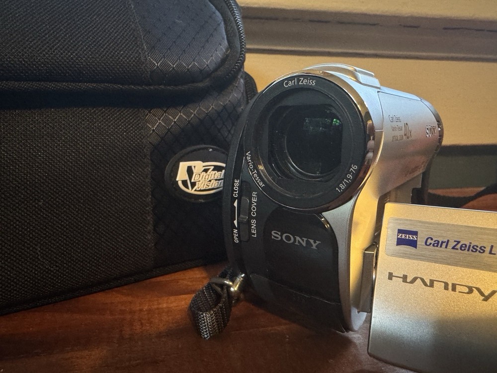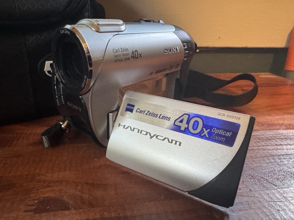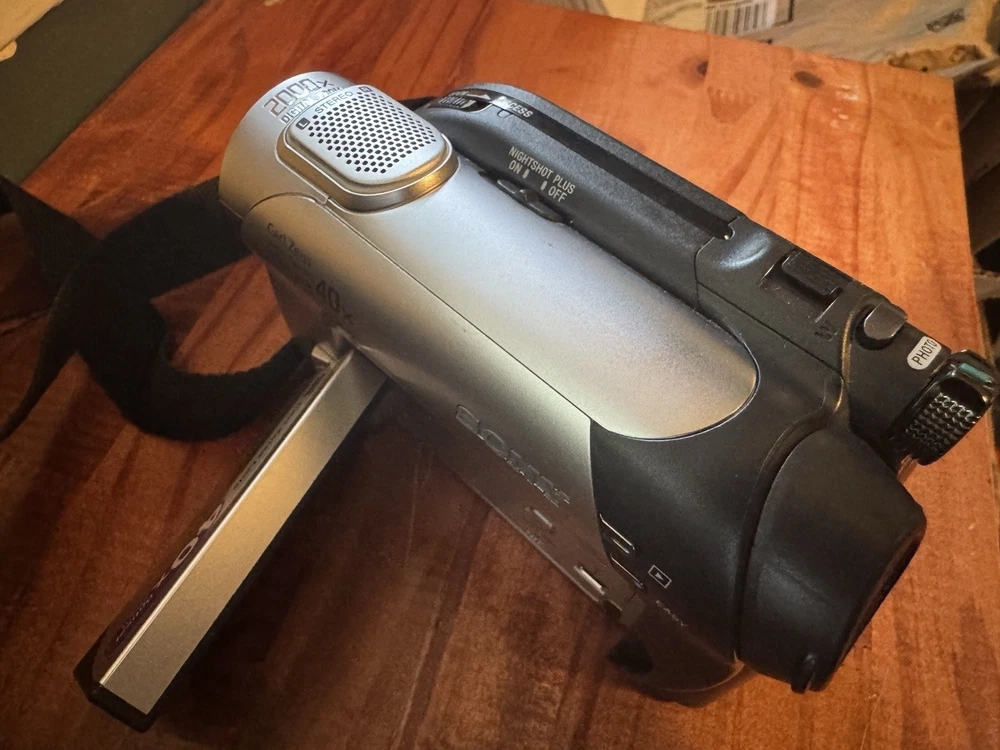 The Sony 40x HandyCam DCR-DVD108 Camcorder is a compact and efficient handheld camcorder designed for Sony users. With a sleek silver design and advanced features like digital zoom up to 2000x, this camcorder from the Sony Handycam series is perfect for capturing memories in standard definition. It comes with a convenient Mini DVD for recording and a built-in microphone for clear audio. The battery is having some trouble holding a charge and likely needs to be replaced. They are about ten bucks. Charger is included. Priced accordingly. The camcorder also includes an LCD screen and touch screen for easy navigation, as well as connectivity through USB for quick sharing of your videos. LCD screen stays slightly open and does not press flush against the camera. Screen works perfectly. Perfect for on-the-go recording, this Sony camcorder is a reliable choice for any photography or video enthusiast.
