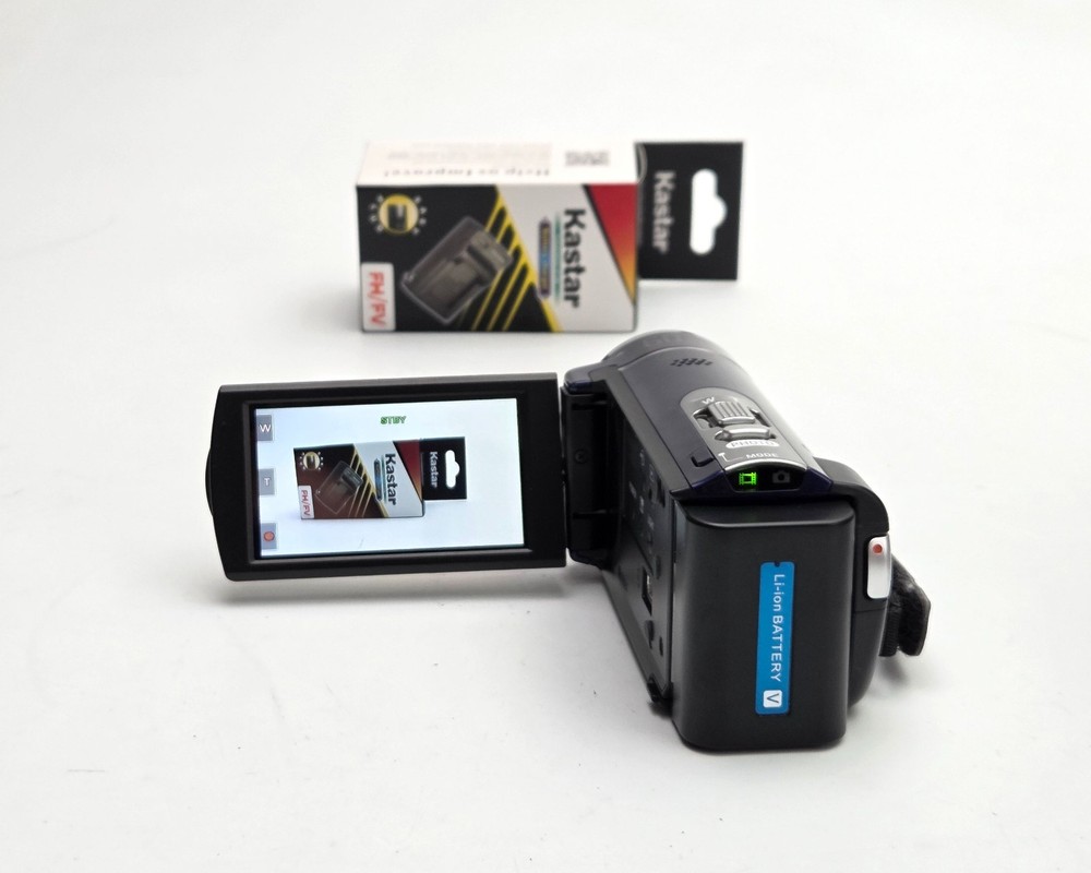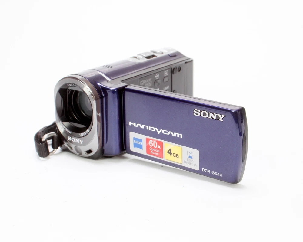 Sony DCR-SX44 Handycam Camcorder (Blue) w/ 4GB Internal Storage Used Camcorder Exhibiting Light Wear from Normal Use, LCD Screen Looks Good, Lens Glass is Undamaged All Camcorder Functions Tested Without Issue and Fast One Day Order Processing for Speedy Delivery Sale Includes: Camcorder, Aftermarket Battery & Charger, Instructions, CD, Box Photos of Actual Items, Contact Me With Questions