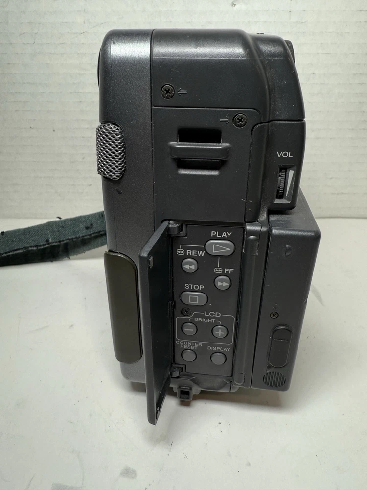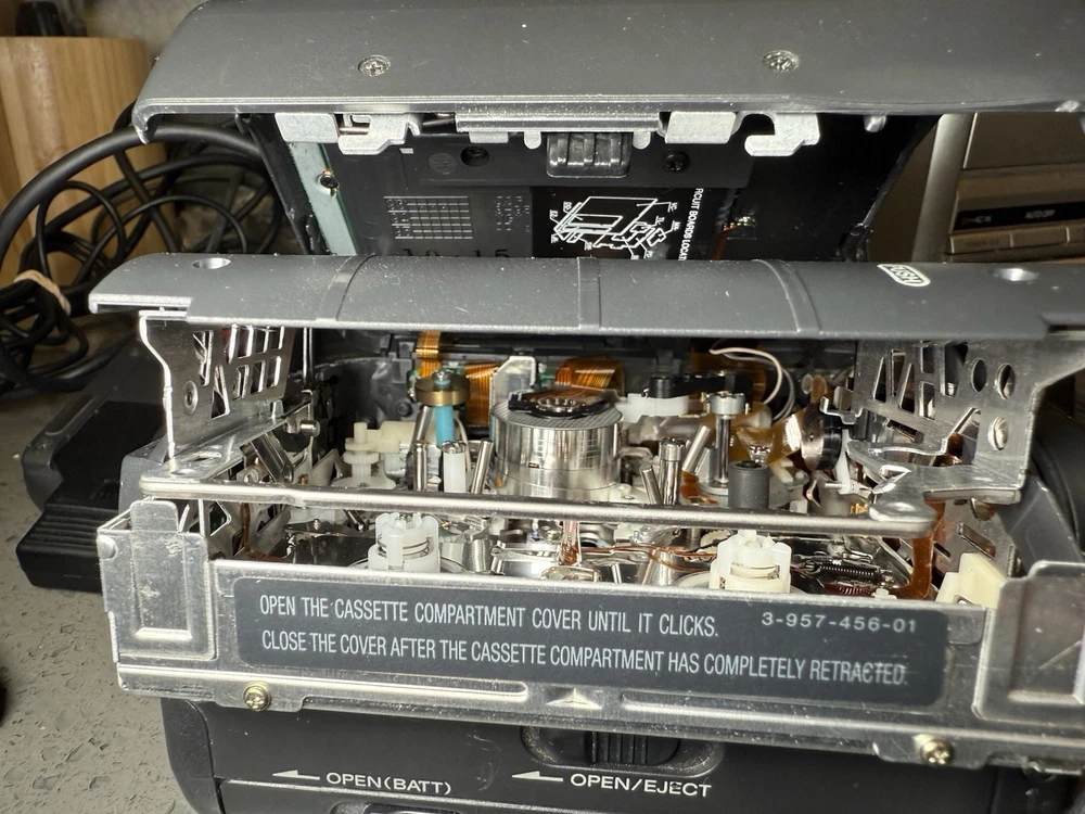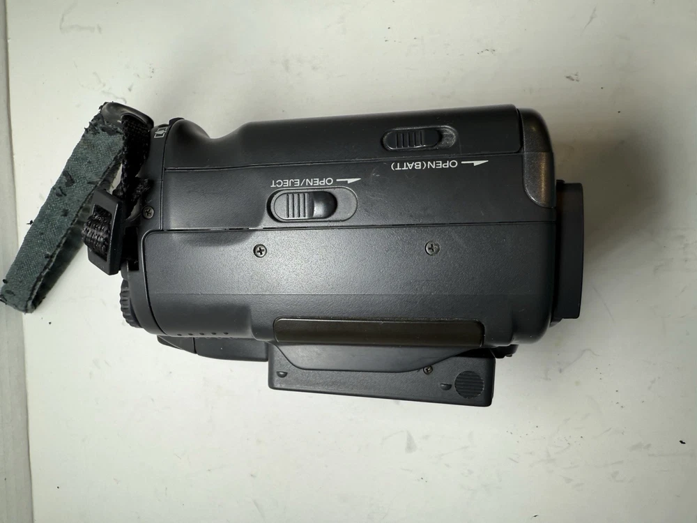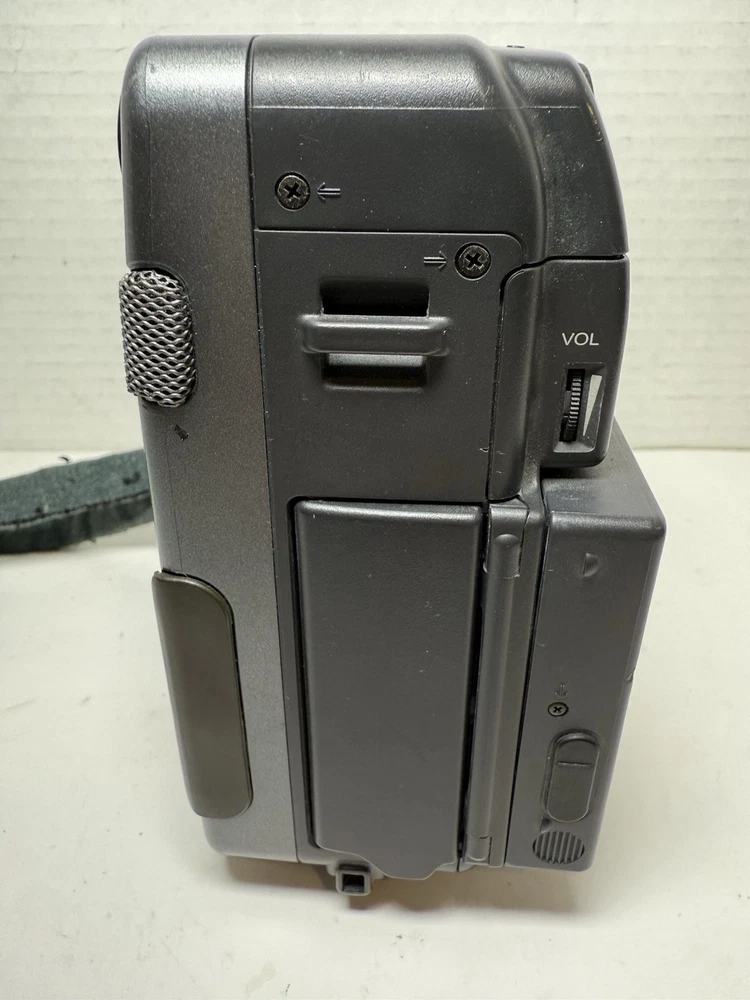 Unit has been fully tested and every function works. I took a picture of the part of the tape path and head that needs cleaning. Playback works but image is distorted. You will need a replacement battery as the included one dies in ~3 minutes. Fast shipping.