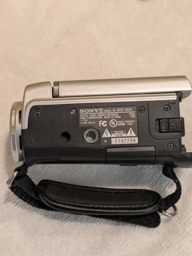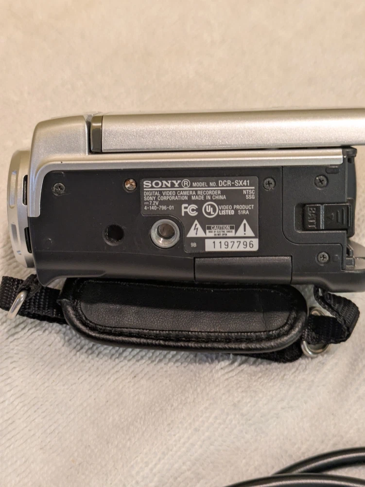 Your purchase will come with the following: 1 Sony Handycam DCR-SX41 1 charging cord w/adapter (for 120 wall outlet) 1 USB to mini usb cable 2 batteries (larger one and brand new smaller one) 1 plug in battery charger (brand new) 1 AV out cable 1 tripod There is no manual or box/case for this unit.