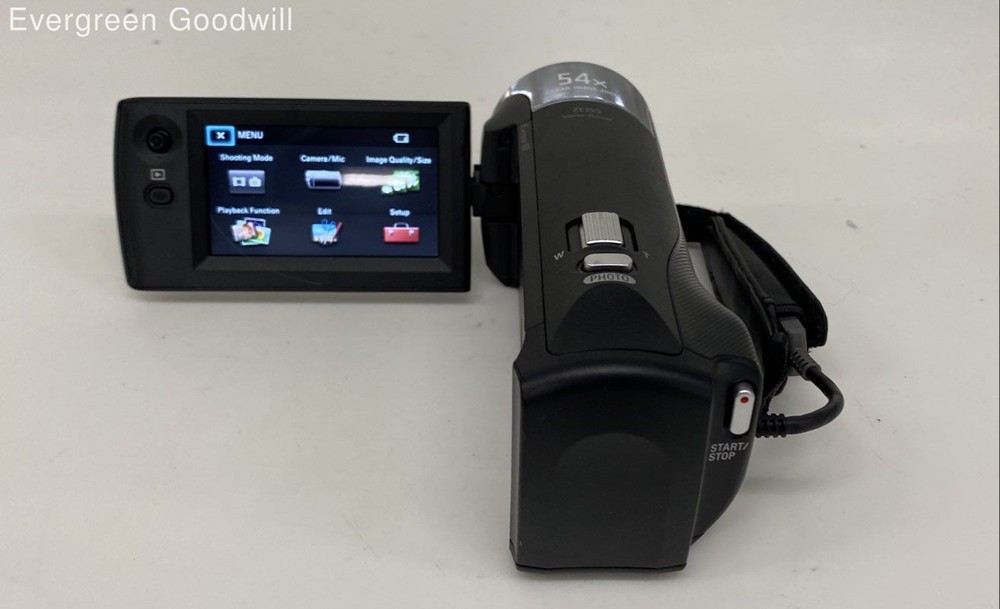 Camcorder powers on but is not tested for functionality. No lens scratches. Camcorder is in excellent cosmetic condition. Comes with a battery and charger. FOR PARTS OR REPAIR ONLY. Condition: For parts or not working / Item powers on - no further testing Evergreen Goodwill helps people get jobs across Northwest Washington by offering high-quality free job training, education and job placement. We empower individuals to overcome barriers to working by providing comprehensive support and connecting them with life-changing job opportunities, ensuring they are career-ready and can support themselves and their families. ***Disclaimer*** All items were donated to Evergreen Goodwill of Northwest Washington with no history or provenance. The auction is for all items pictured. Items may need servicing and/or benefit from a cleaning upon arrival. Please see photos for additional details and feel free to ask questions. PAYMENTS Please note that your entire order will be canceled by eBay if the oldest item exceeds 4 days without payment. Once an order is canceled, we are unable to re-invoice and the item will be relisted. For a combined shipping invoice, please send us one request within 3 days of winning the first item to avoid cancelation of your entire order. Once a combined invoice has been sent, we are unable to add additional items to the invoice. SHIPPING Local pickup is not available at this time. International shipping is not available at this time. We offer combined shipping as long as items will ship safely together. Auctions must end within 3 days of each other to be eligible for combined shipping. Please hold off on payment until all auctions have ended then proceed to checkout. Please do not pay for any items individually if you wish to have them combined - they must be paid at the same time. Items listed for flat-rate shipping are not eligible for combined shipping. PO Box addresses will require USPS shipments as FedEx Ground will not deliver. If FedEx is selected we may need to invoice for additional shipping costs.
