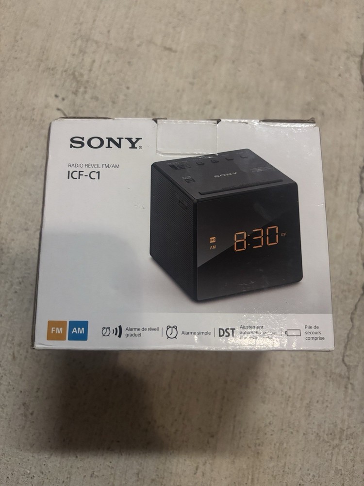Sony Compact AM/FM Alarm Clock Radio Battery Back-Up, Adjustable Brightness Control, Programmable Sleep Timer, Daylights Savings Time Adjustment, Black Finish