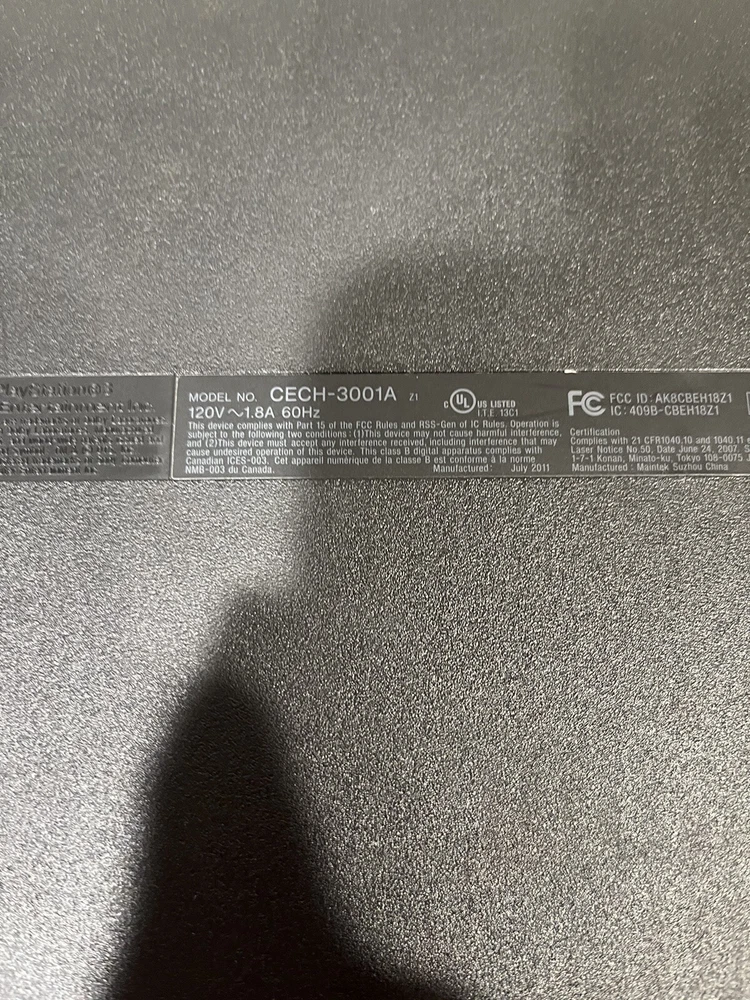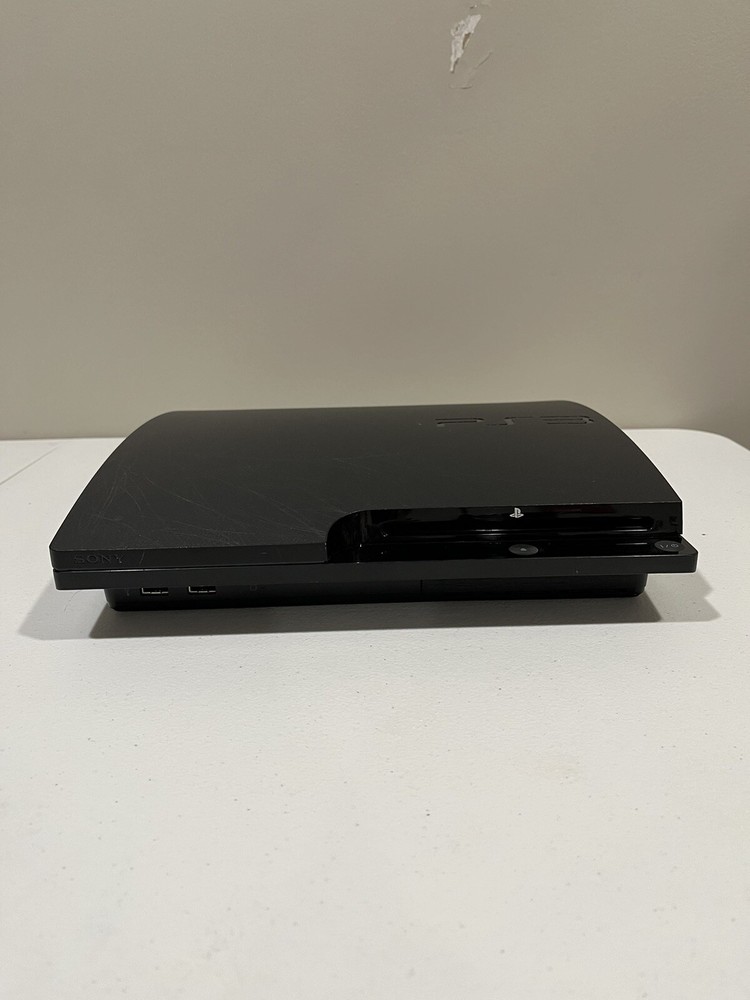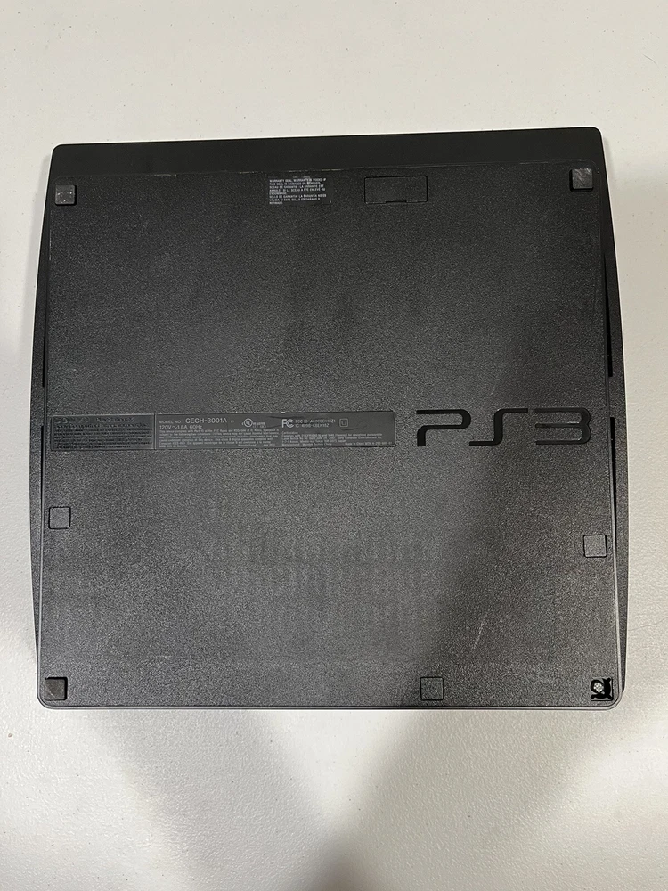 This is a Sony PlayStation 3 Slim console in black, with a storage capacity of 160GB. It includes a controller and games, and is tested for functionality. The console is a home entertainment system that can play Blu-Ray discs and has Wi-Fi capability. It has HDMI connectivity and a resolution of 1080p. The model is CECH-3001A, manufactured in the United States for the NTSC-U/C region. Games and controller have also been tested and discs are in excellent condition. Tiger Woods 13 is disc only. NASCAR 11 and Tiger Woods 11 are complete.