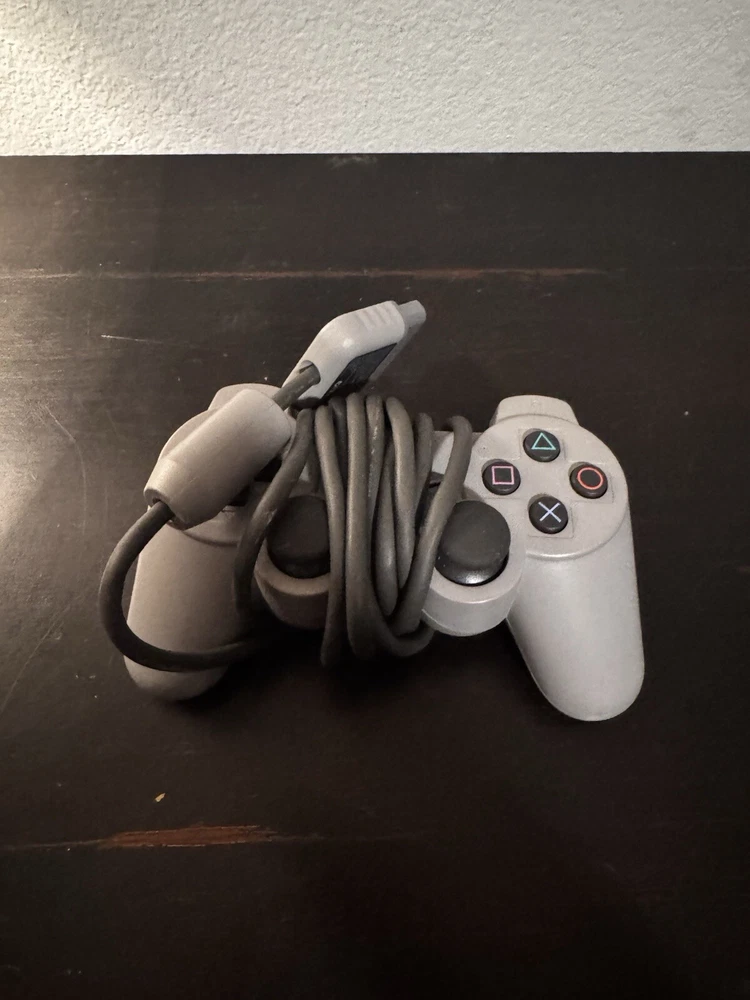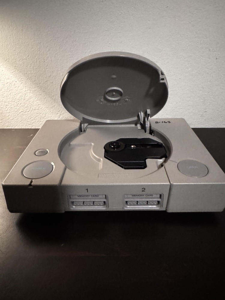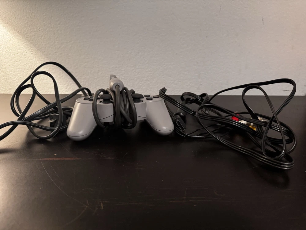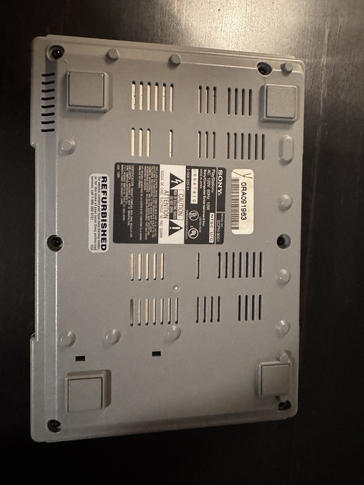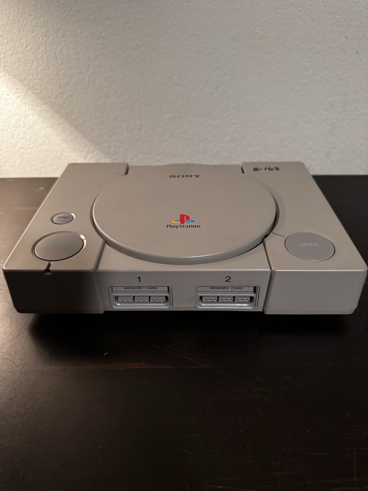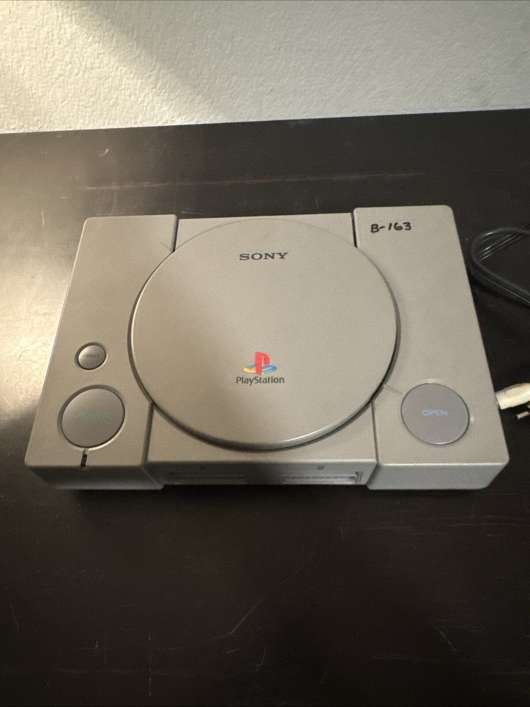 The product is a Sony PlayStation 1 home console in gray color, NTSC-U/C region code, and includes cords and controller. It is a used item in working condition. The console is a first-generation model of the Sony PlayStation series, known for its iconic gray design and being a popular gaming console in the 1990s. This particular listing offers a complete set with the necessary accessories to start playing games right away. Products work and is in great conditions. Thanks for looking!