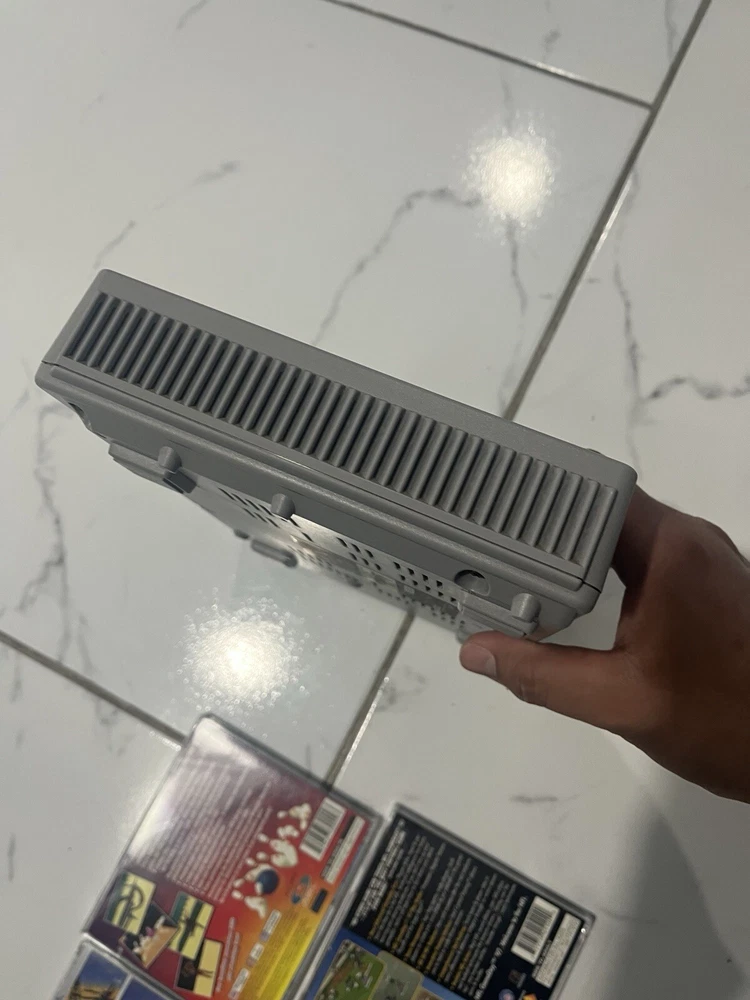 No cables included, controller or memory card Just the console and games Has been tested and works Yellowing in the front of the console. Two of the games cases are cracked or broken as seen in photos All discs have been tested and work and are in very good condition